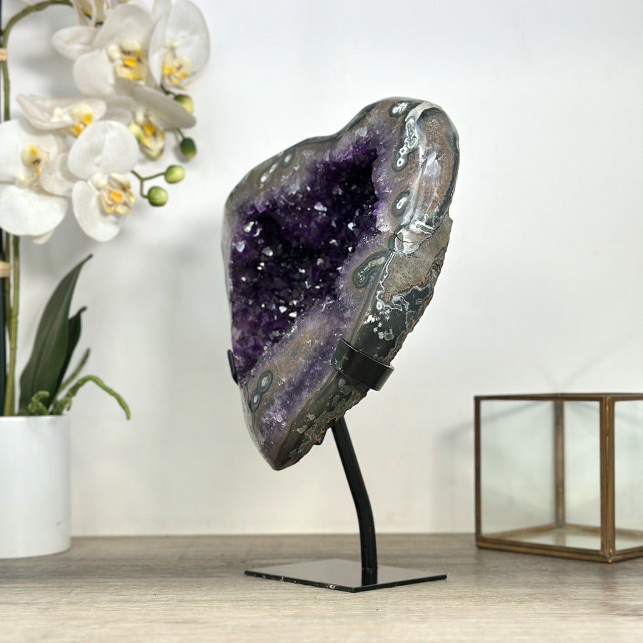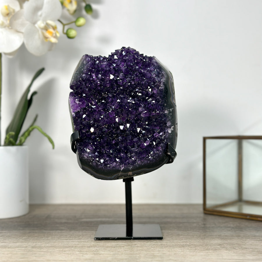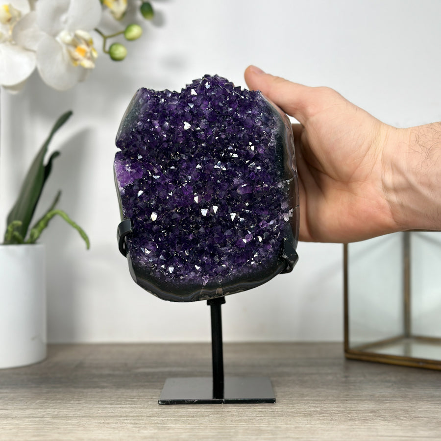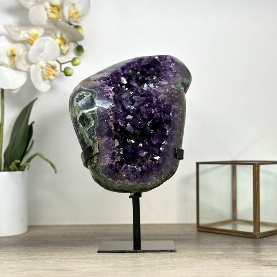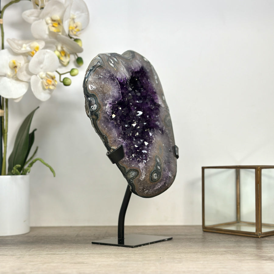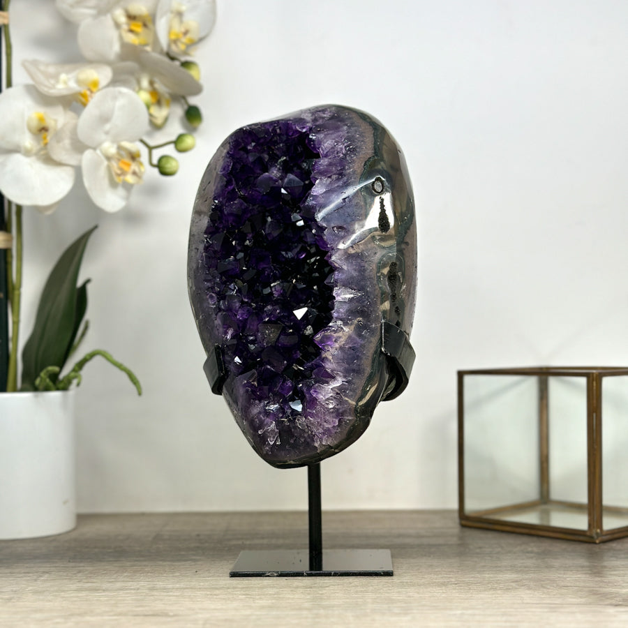 These carefully selected minerals are expertly mounted on handmade metal stands, allowing them to be displayed proudly in any room. With their stunning natural colors and unique characteristics, these mineral pieces will add a touch of elegance and sophistication to any space.