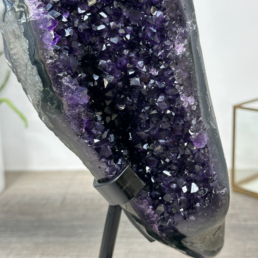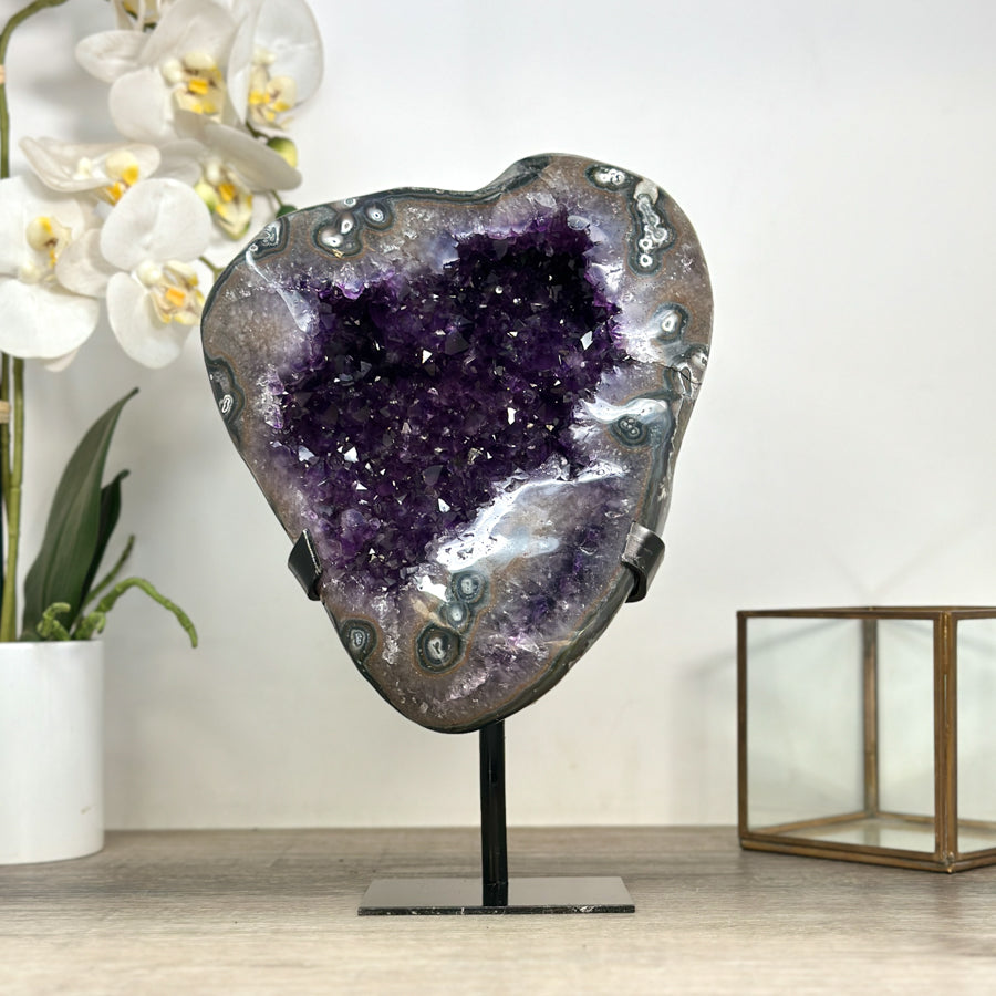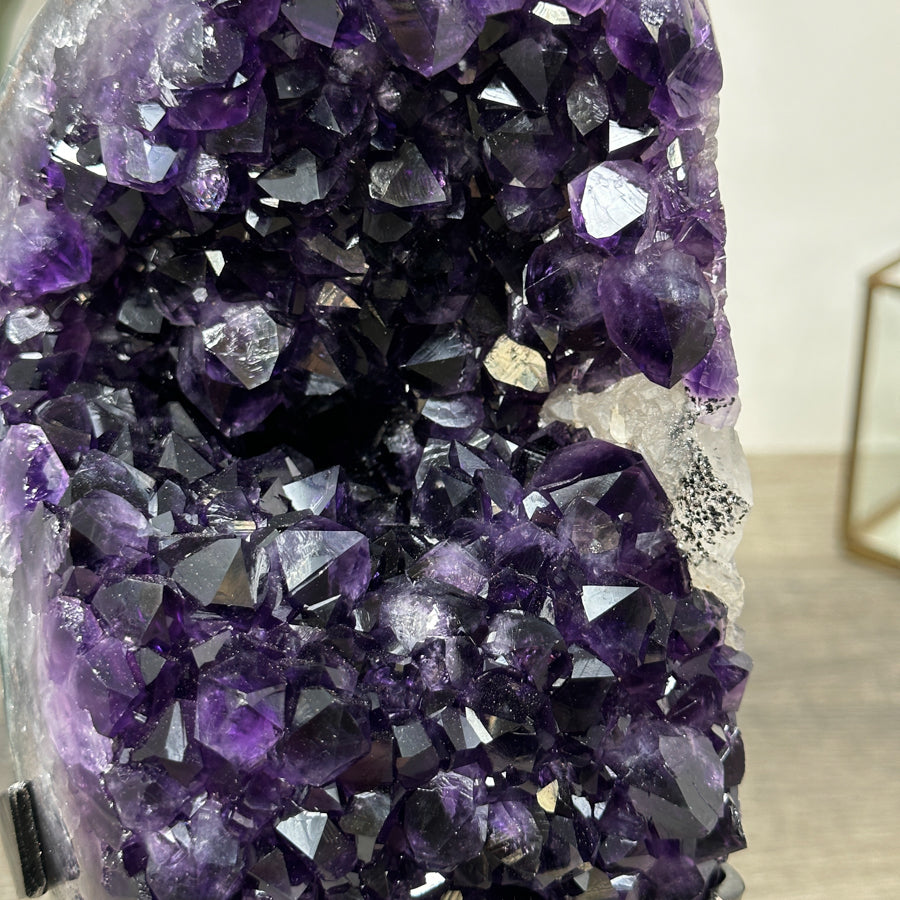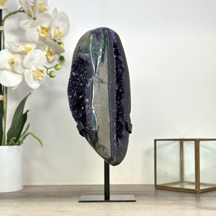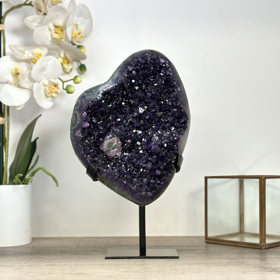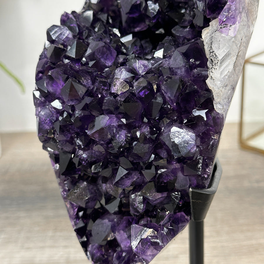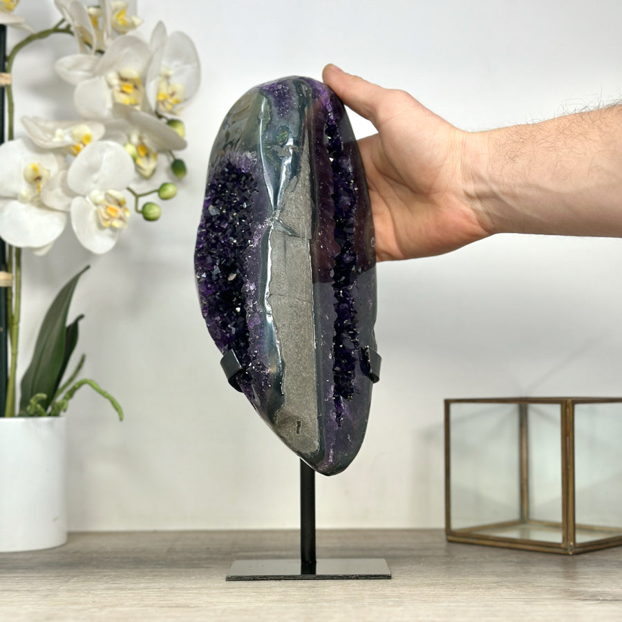 These carefully selected minerals are expertly mounted on handmade metal stands, allowing them to be displayed proudly in any room. With their stunning natural colors and unique characteristics, these mineral pieces will add a touch of elegance and sophistication to any space.