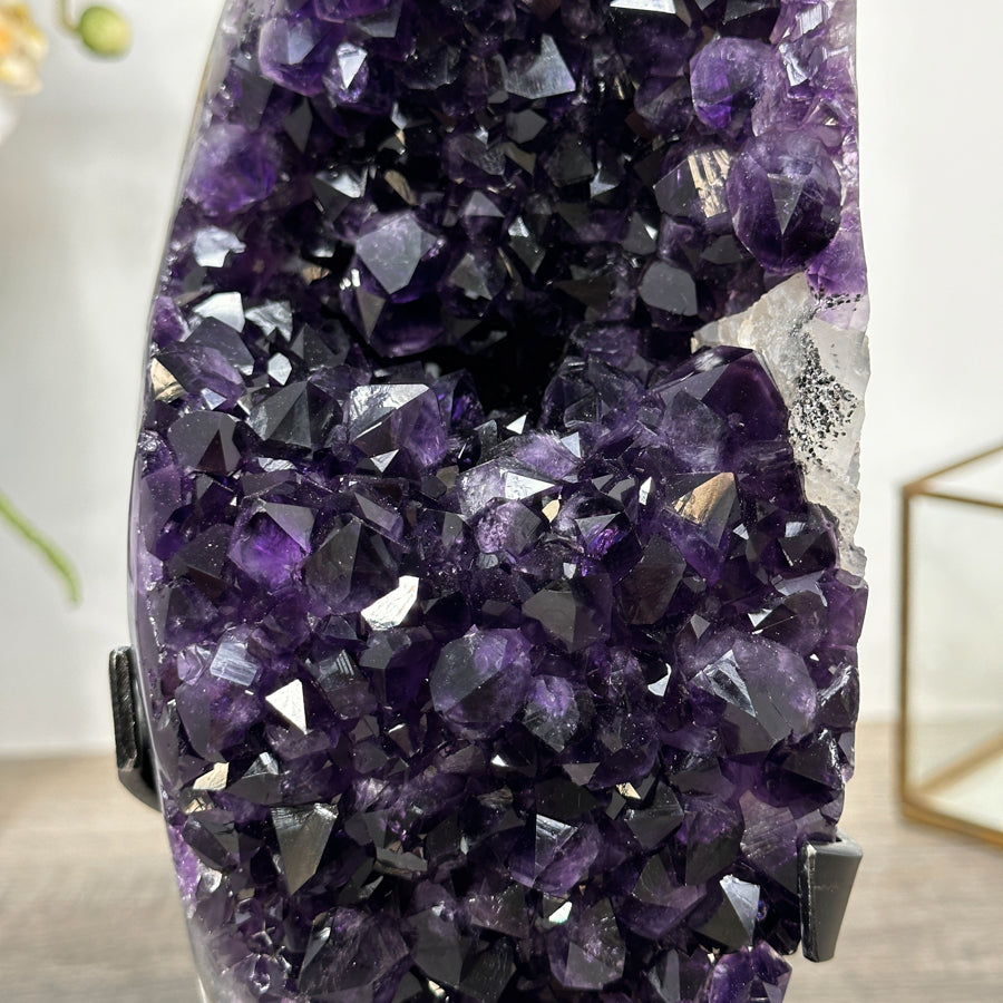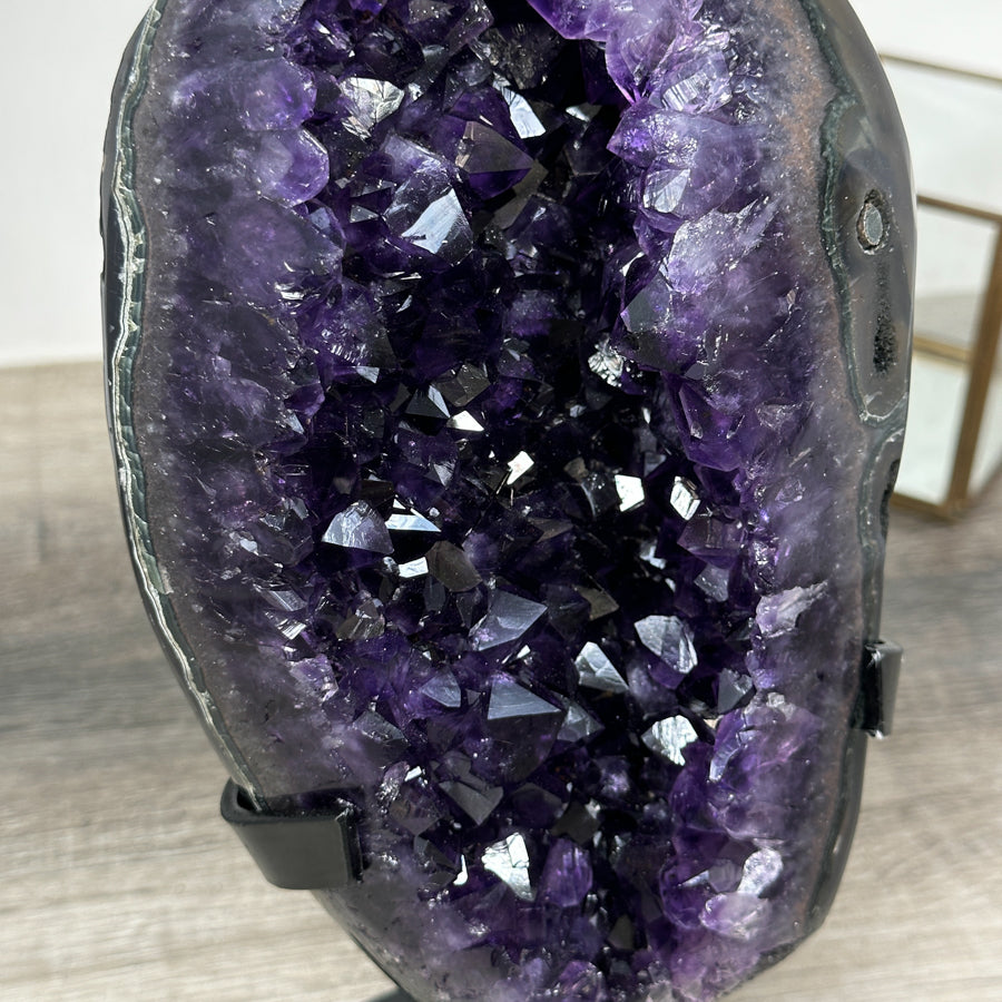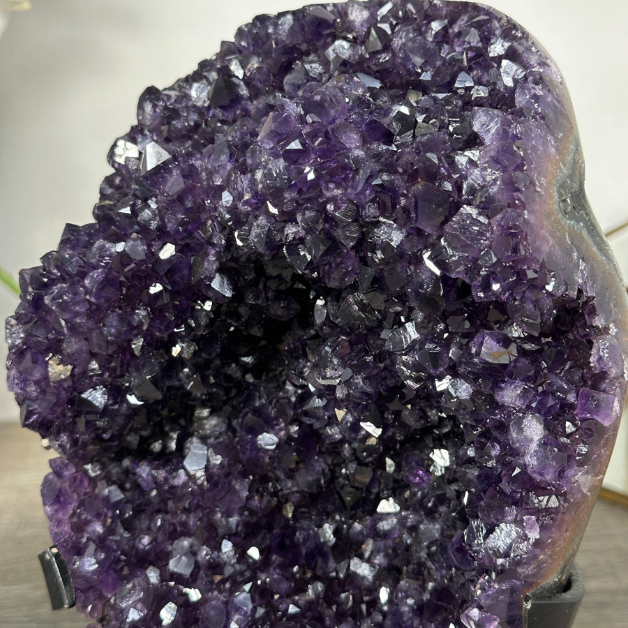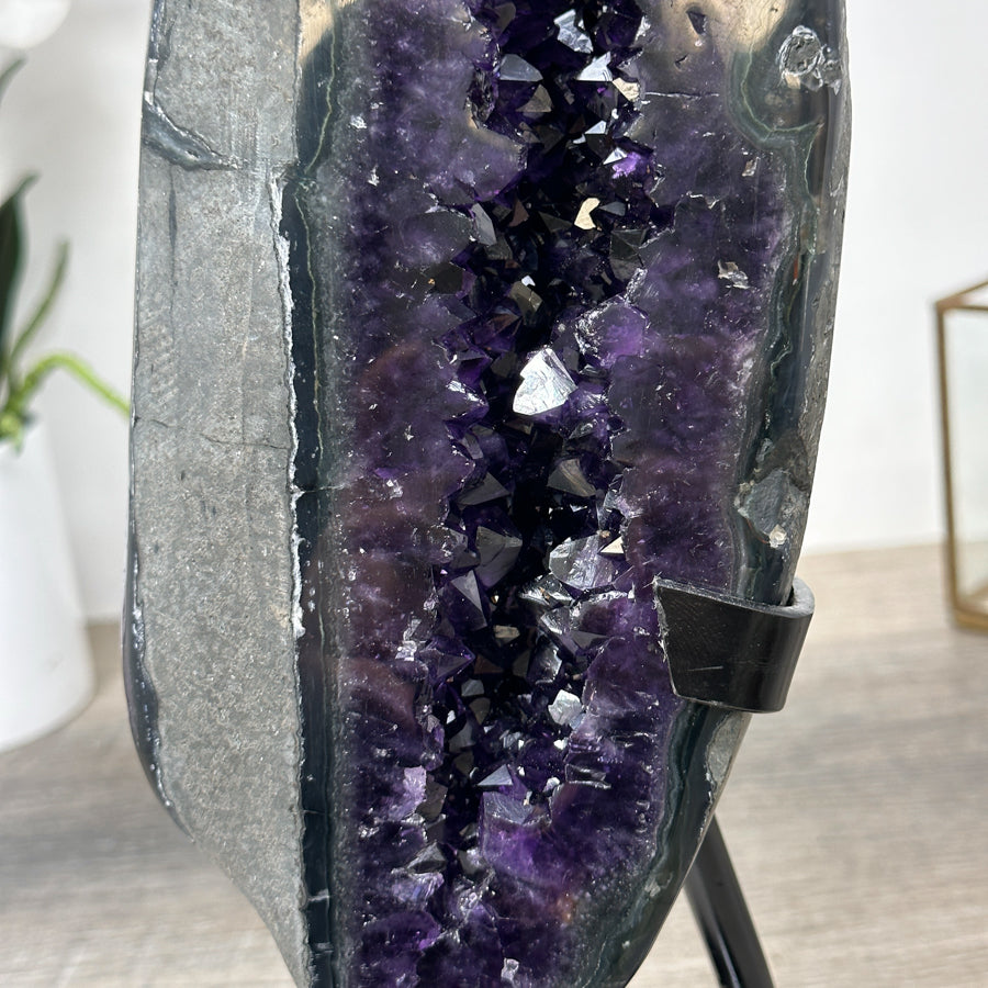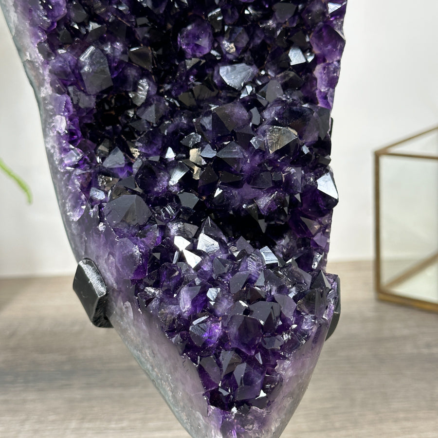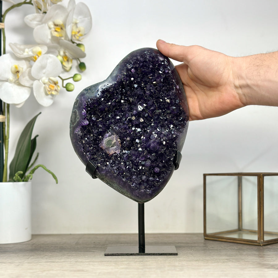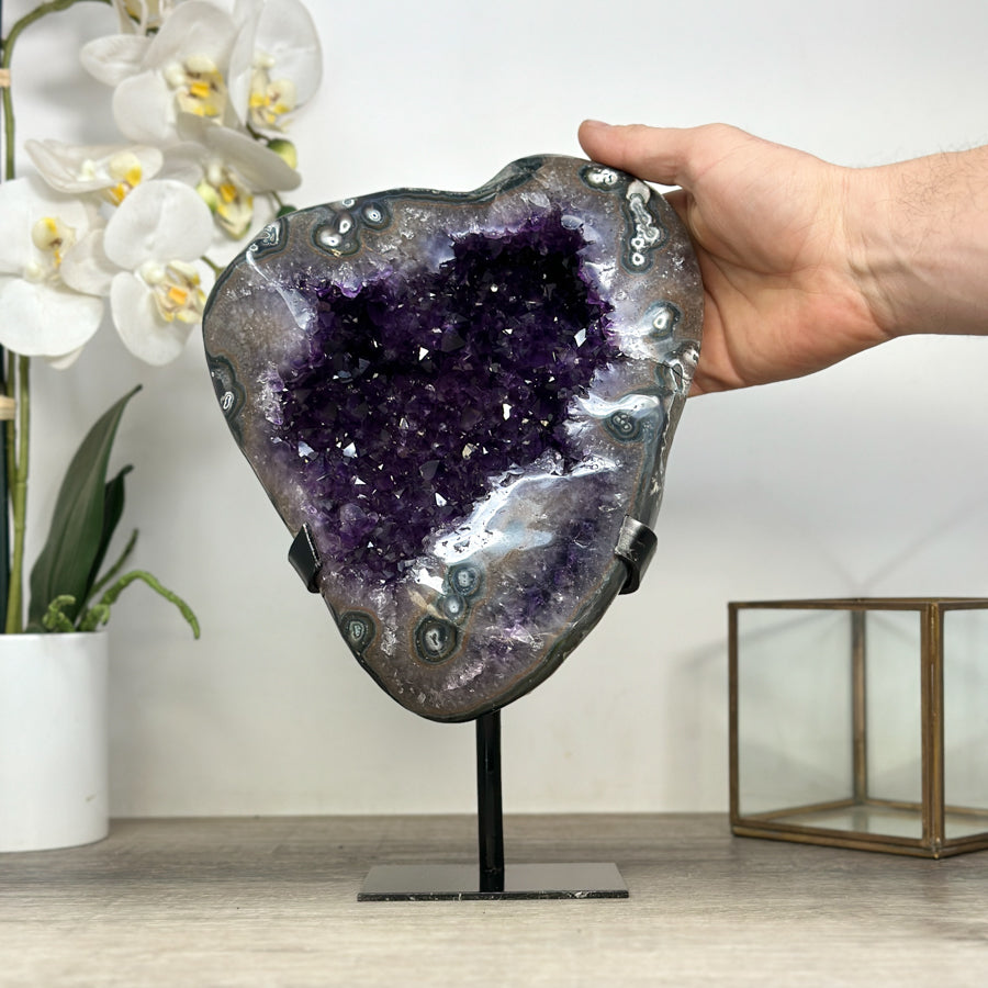 These carefully selected minerals are expertly mounted on handmade metal stands, allowing them to be displayed proudly in any room. With their stunning natural colors and unique characteristics, these mineral pieces will add a touch of elegance and sophistication to any space.