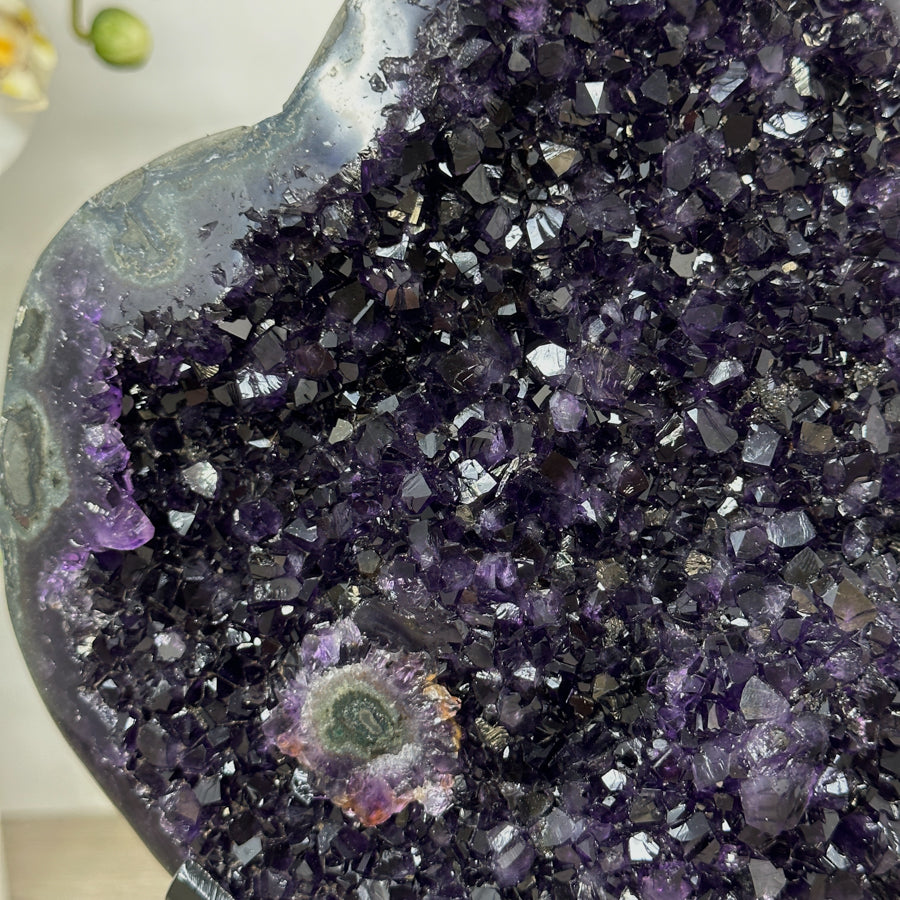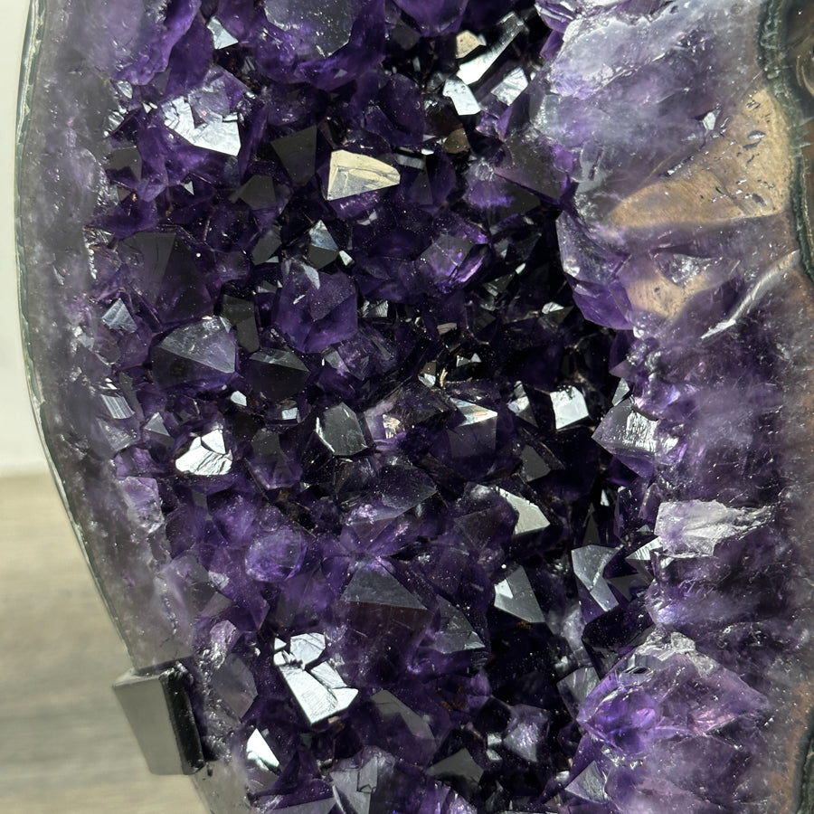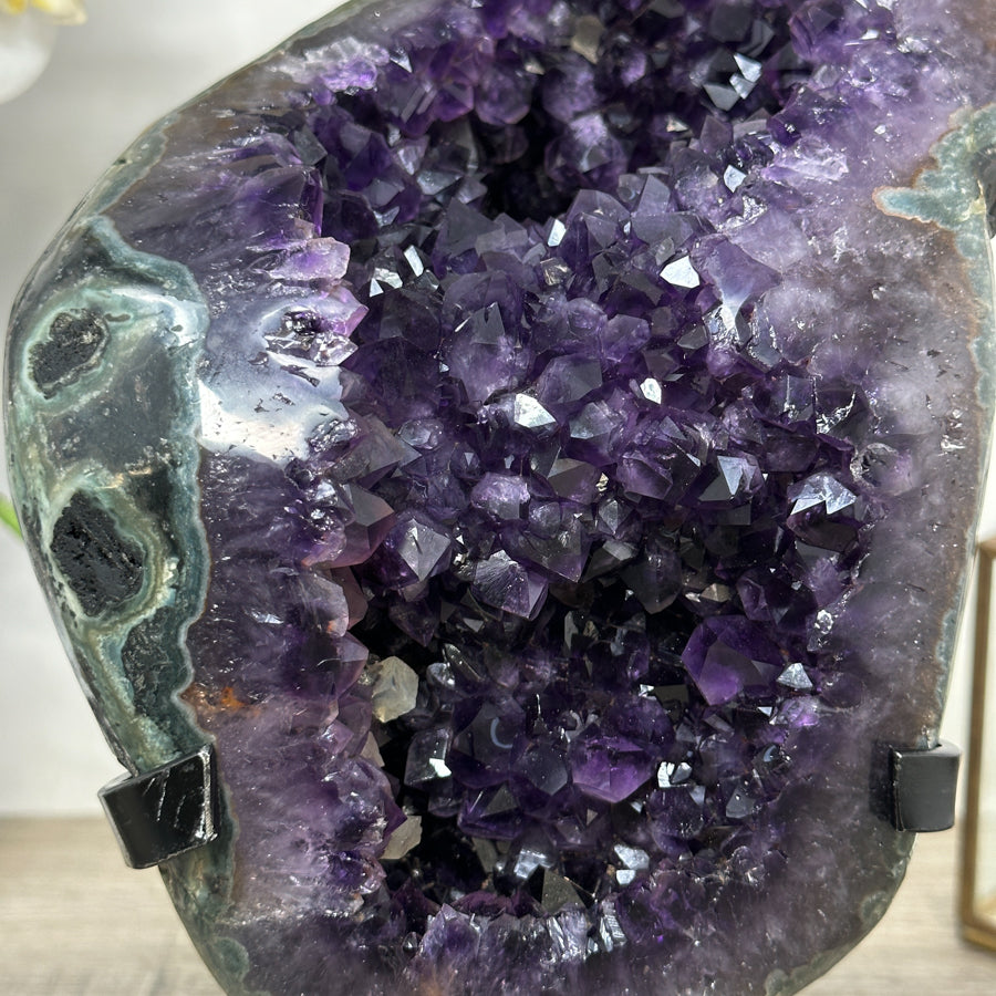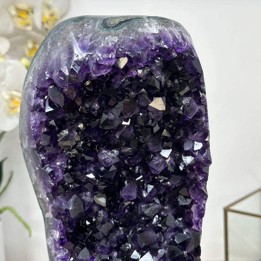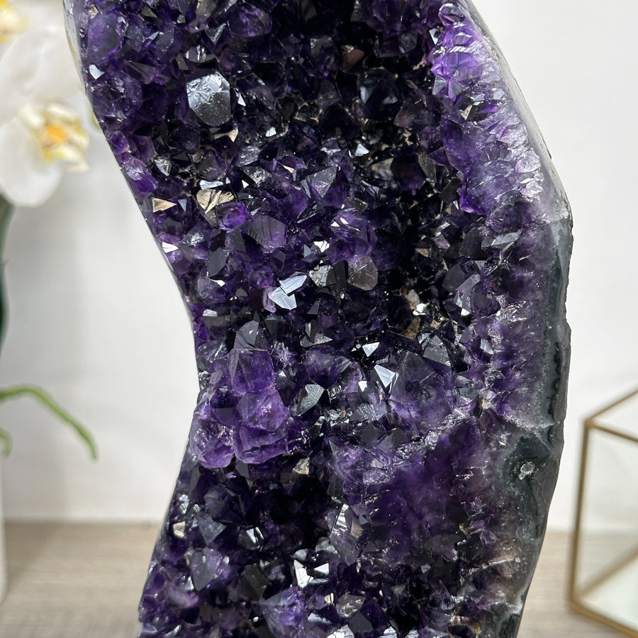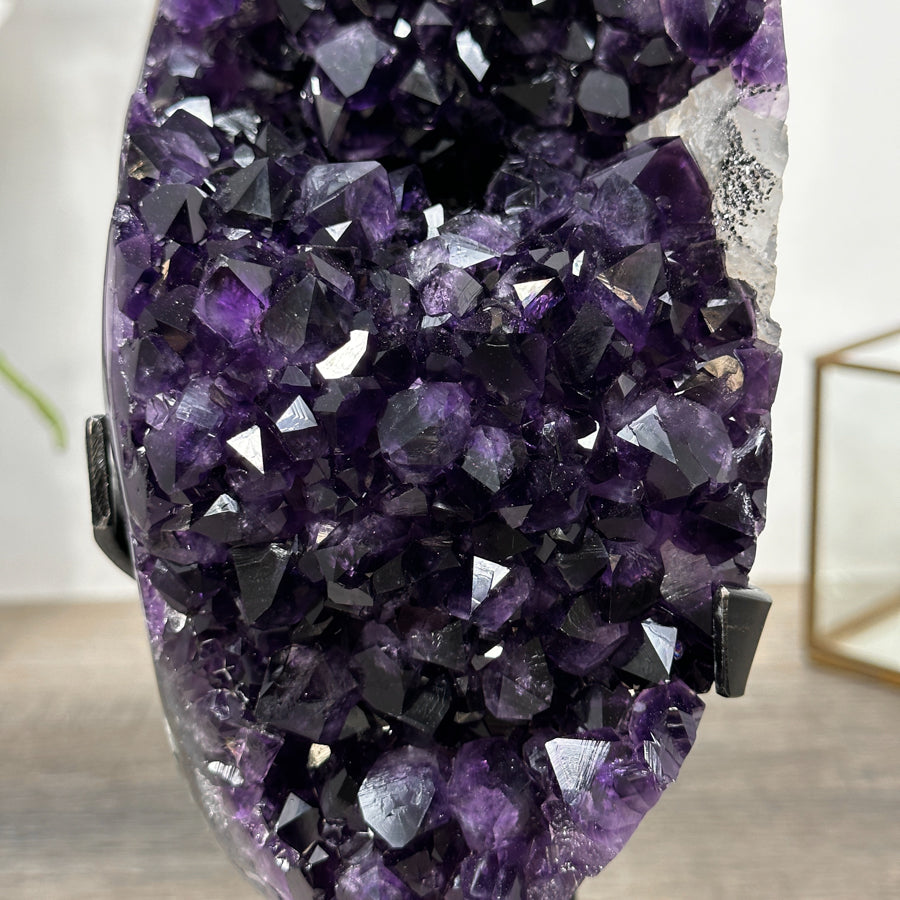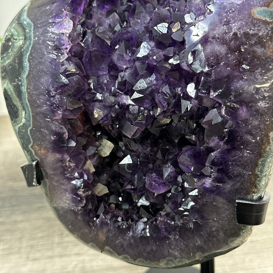 These carefully selected minerals are expertly mounted on handmade metal stands, allowing them to be displayed proudly in any room. With their stunning natural colors and unique characteristics, these mineral pieces will add a touch of elegance and sophistication to any space.