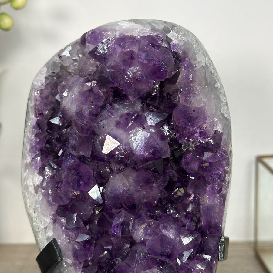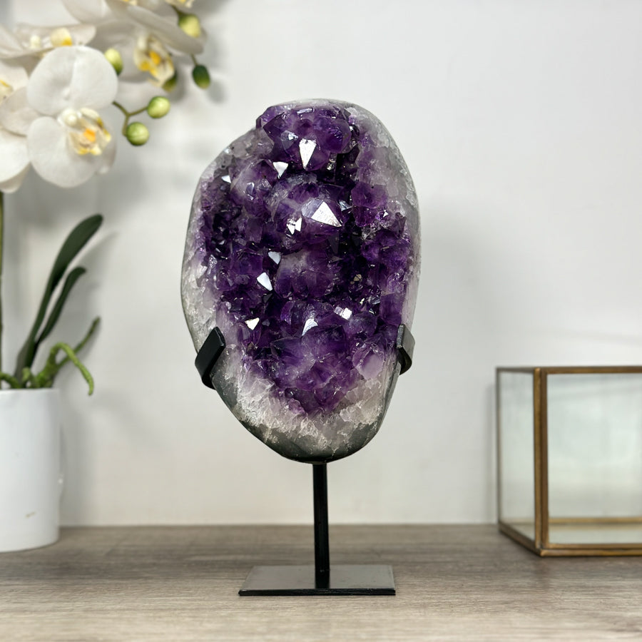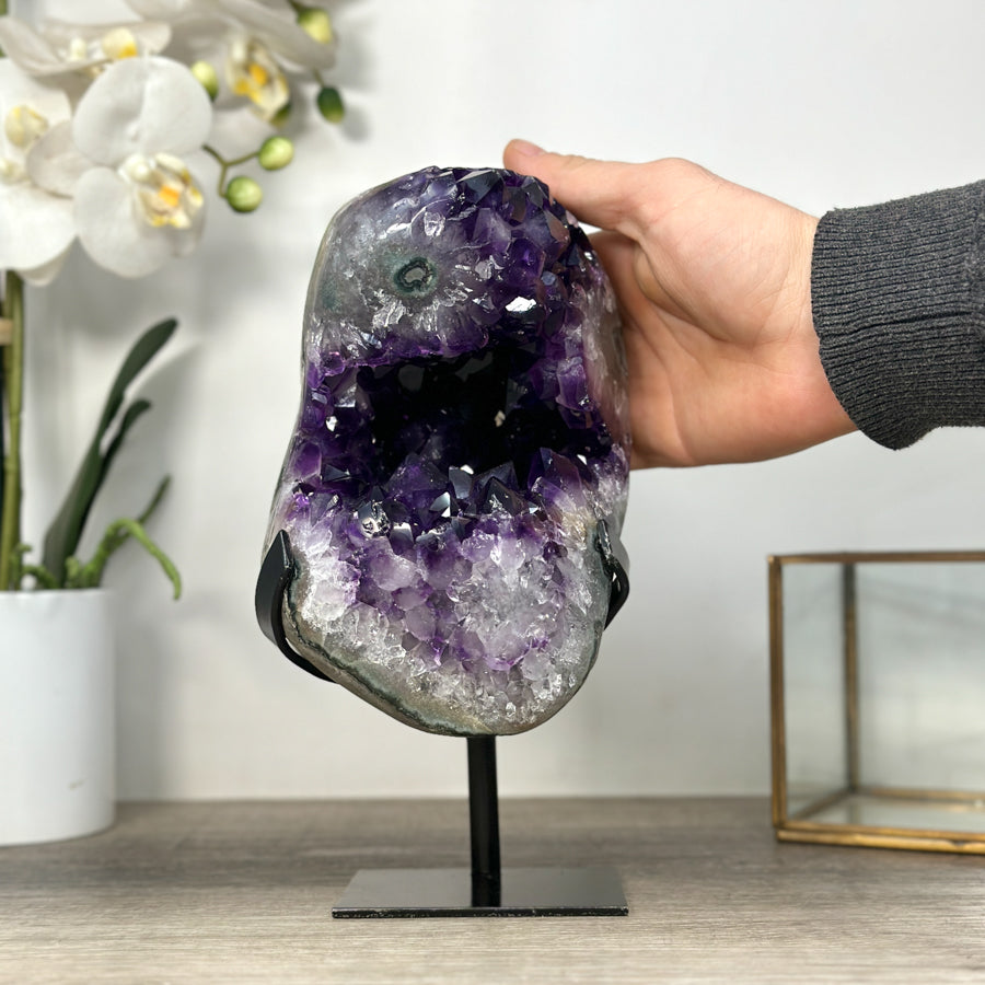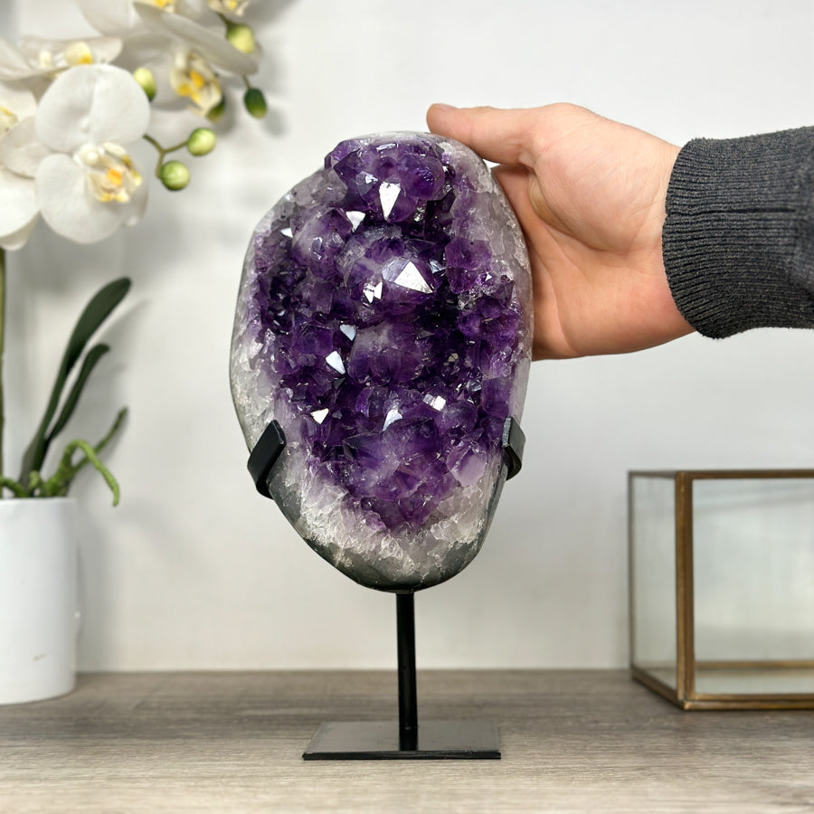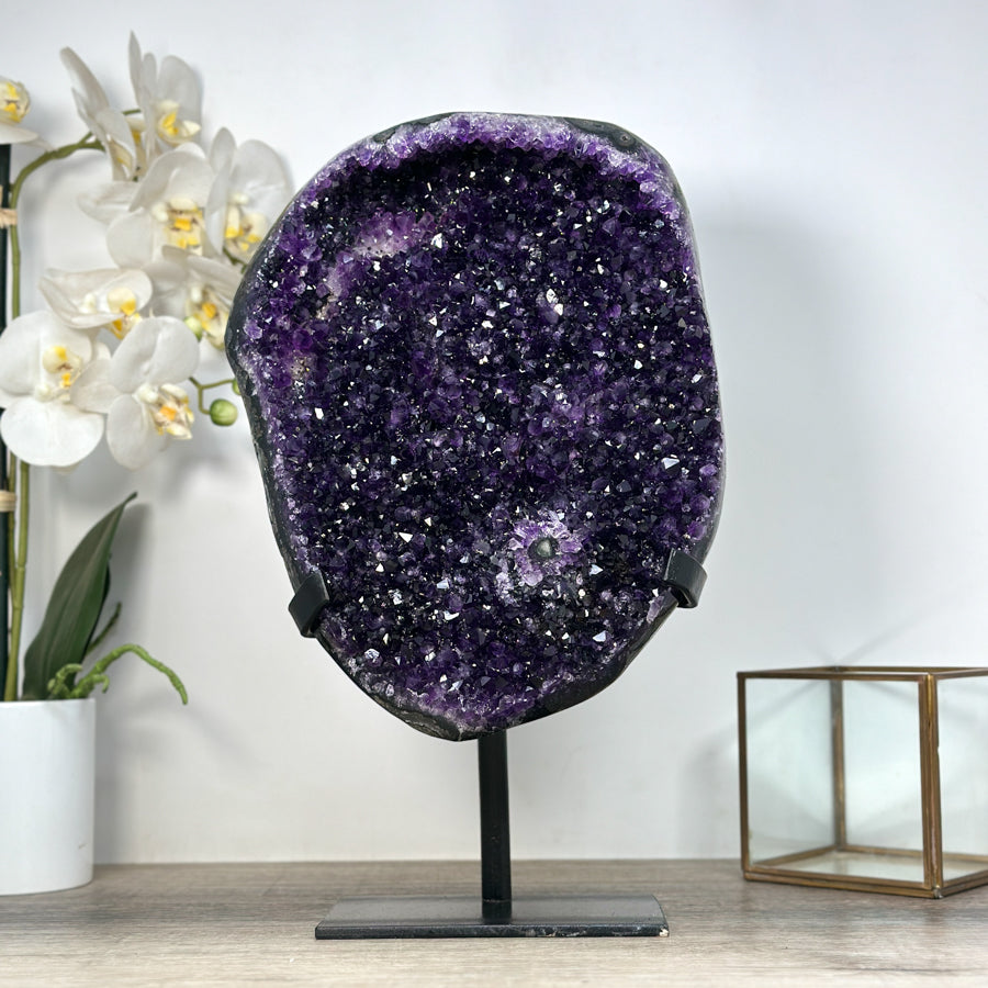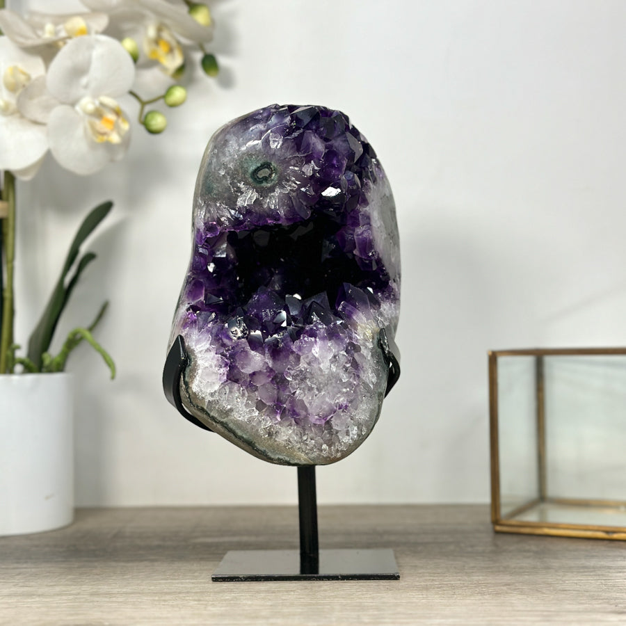 Natural Amethyst Crystal Geode on Stand with Large & Deep Purple Crystals - MWS2590