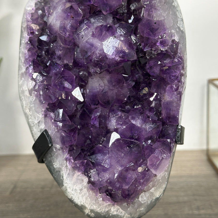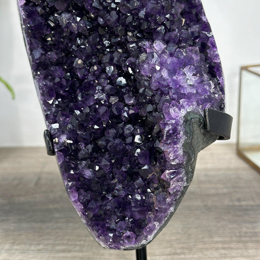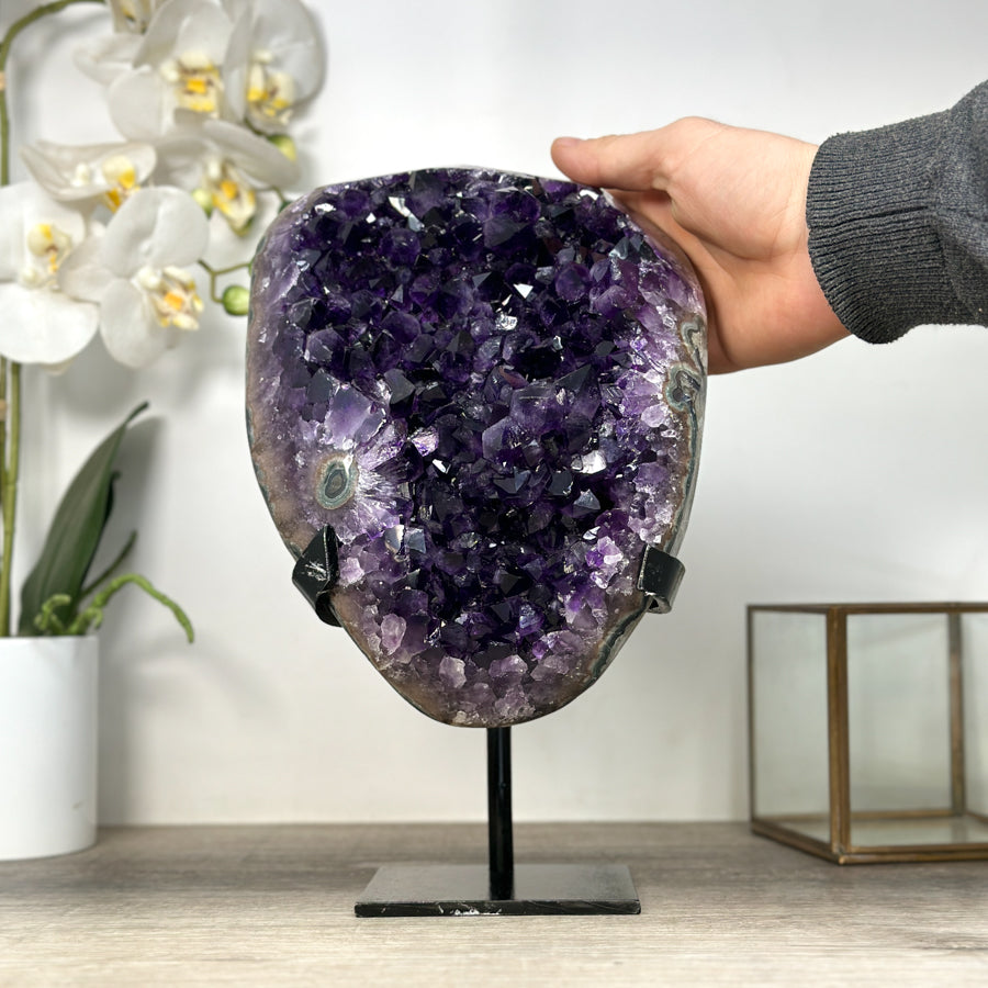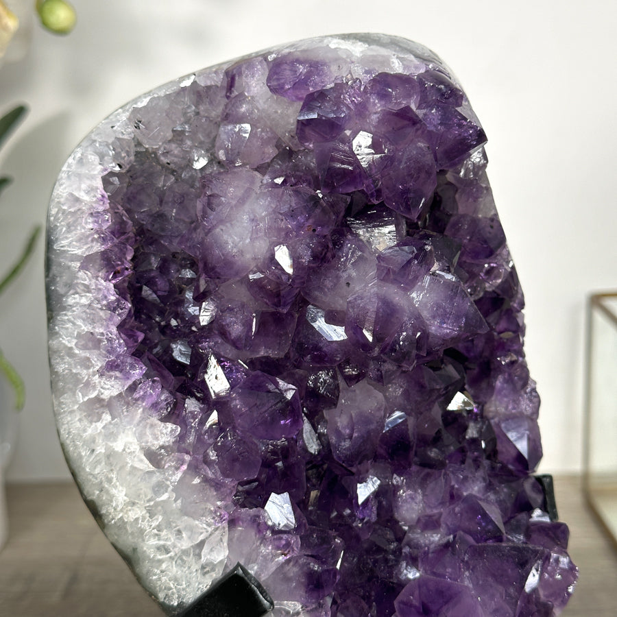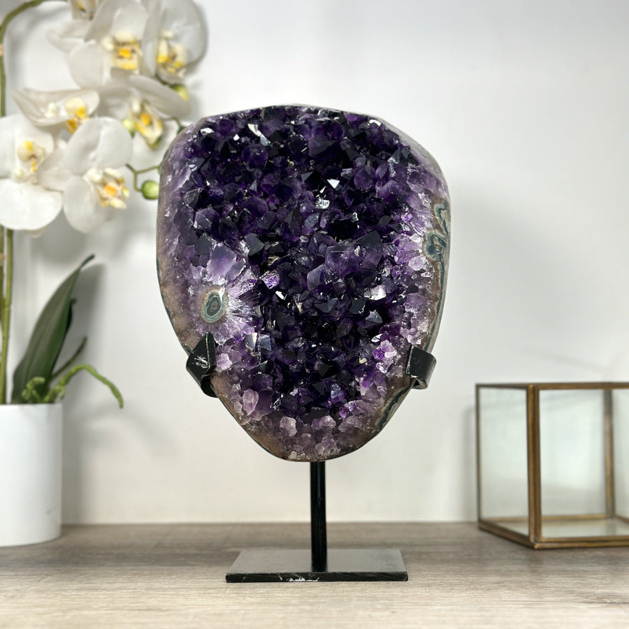 Natural Amethyst Crystal Geode on Stand with Large & Deep Purple Crystals - MWS2590