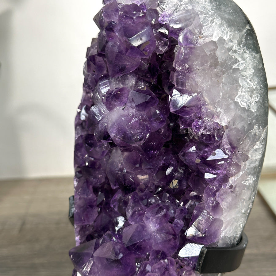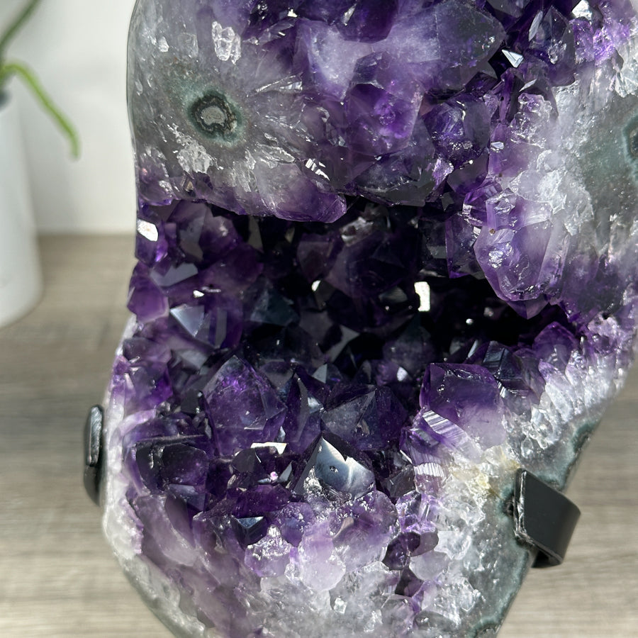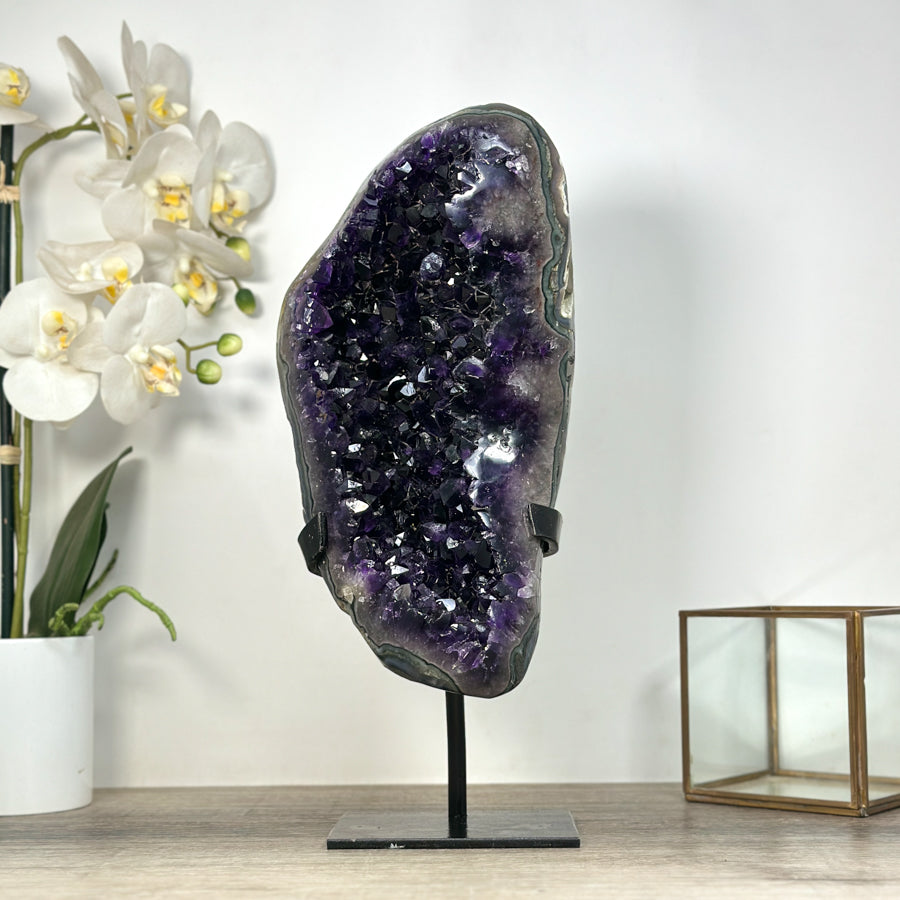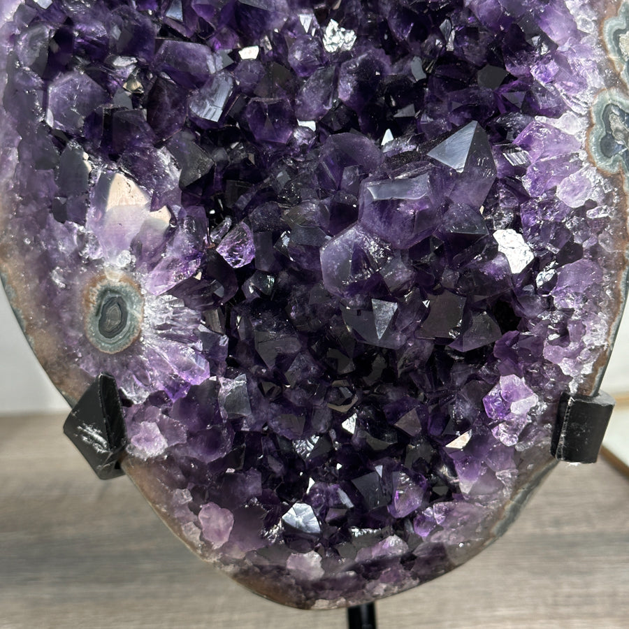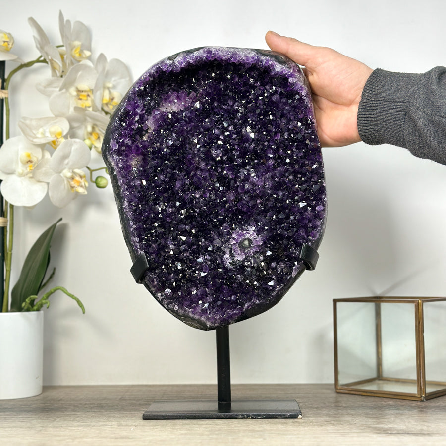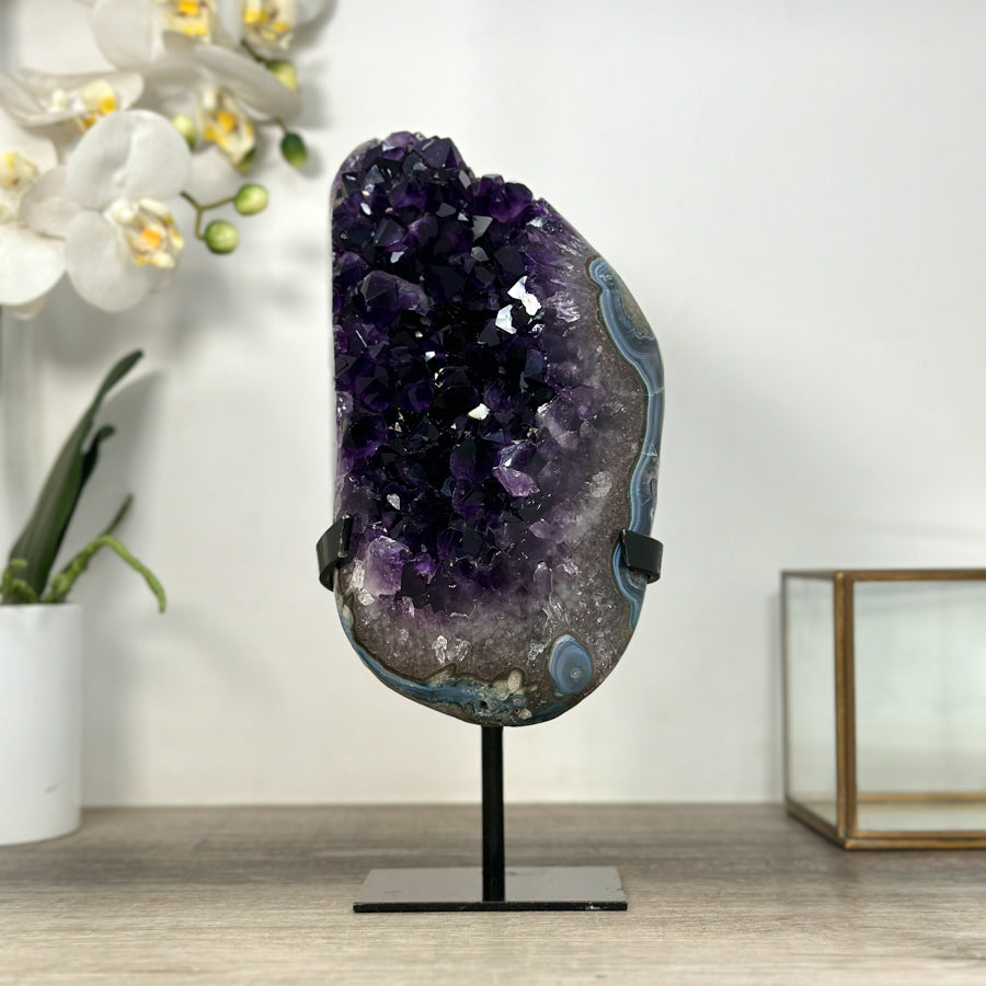 Natural Amethyst Crystal Geode on Stand with Large & Deep Purple Crystals - MWS2590