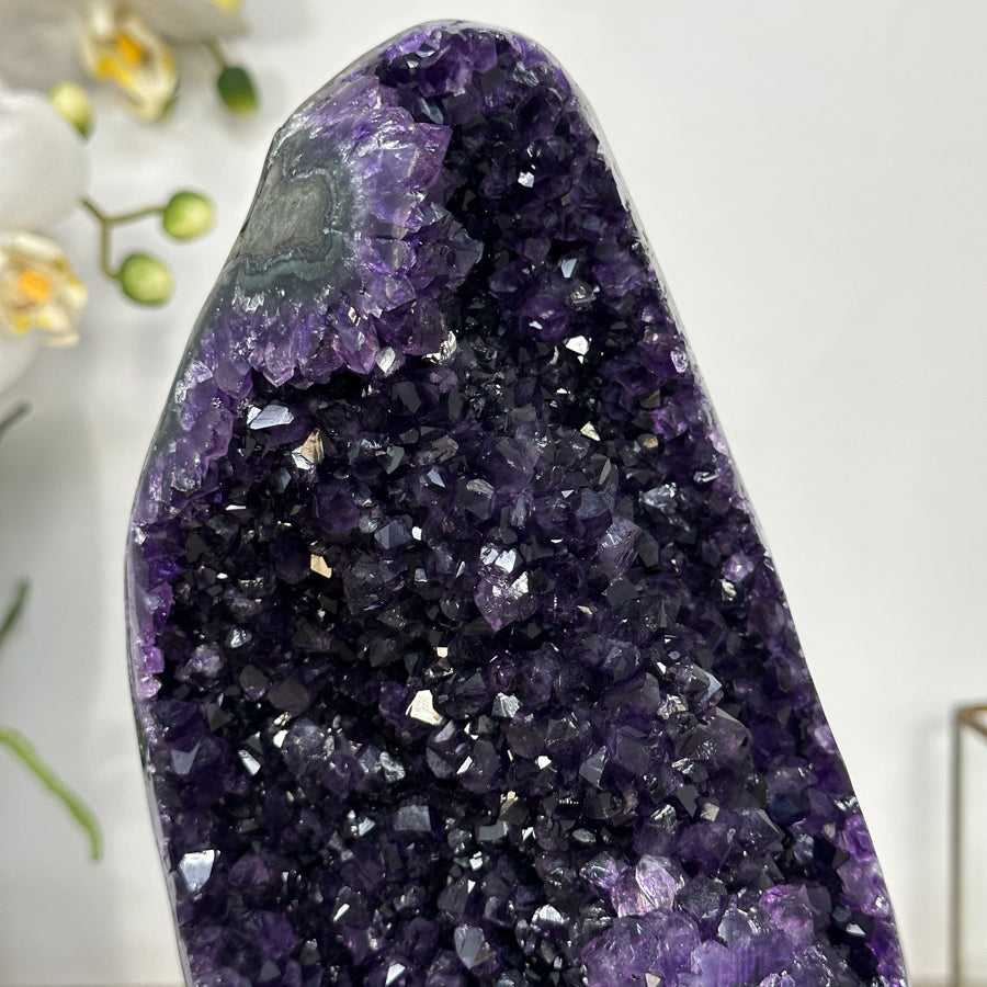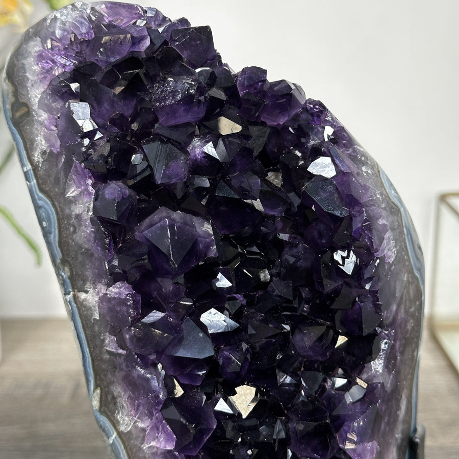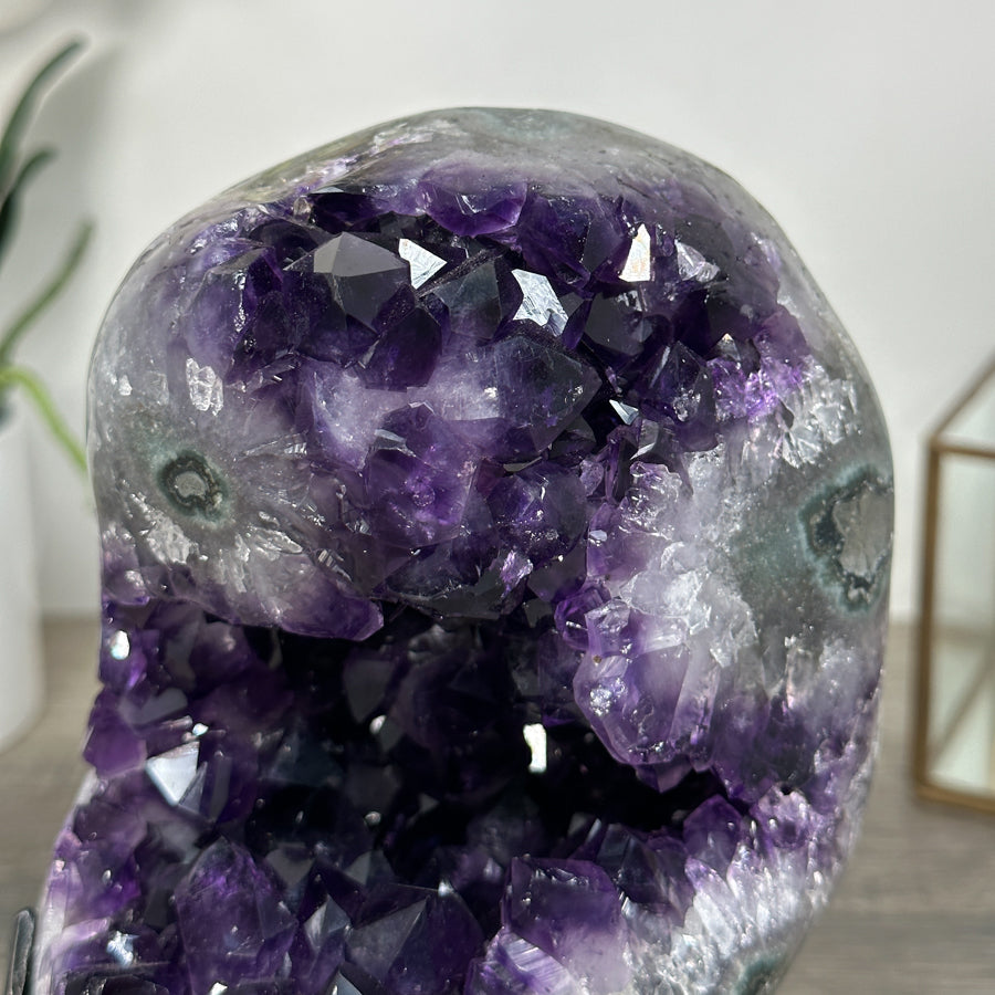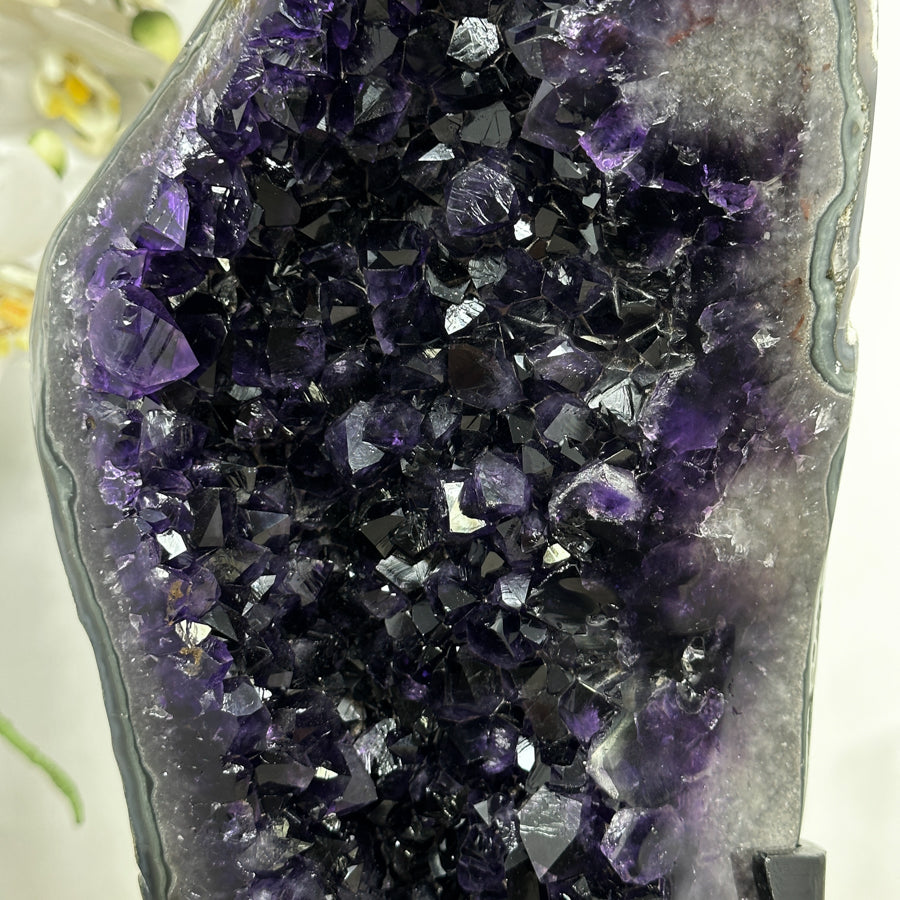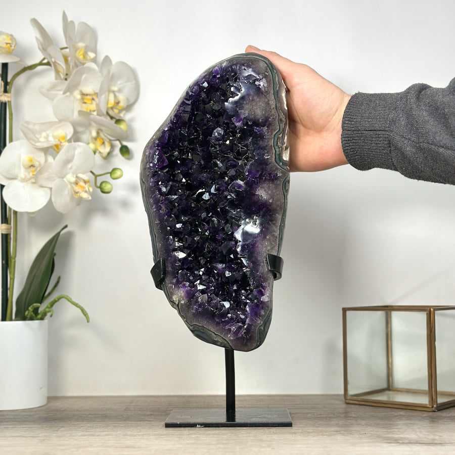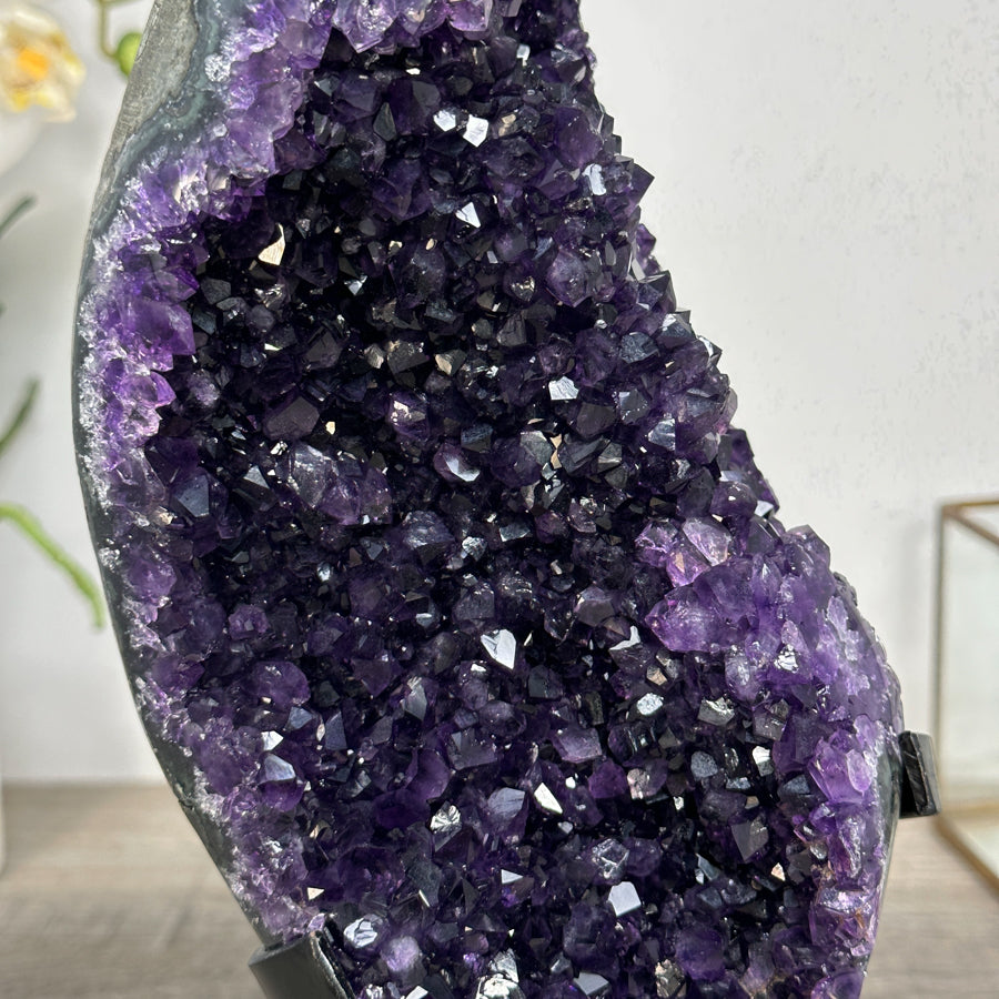 Natural Amethyst Crystal Geode on Stand with Large & Deep Purple Crystals - MWS2590