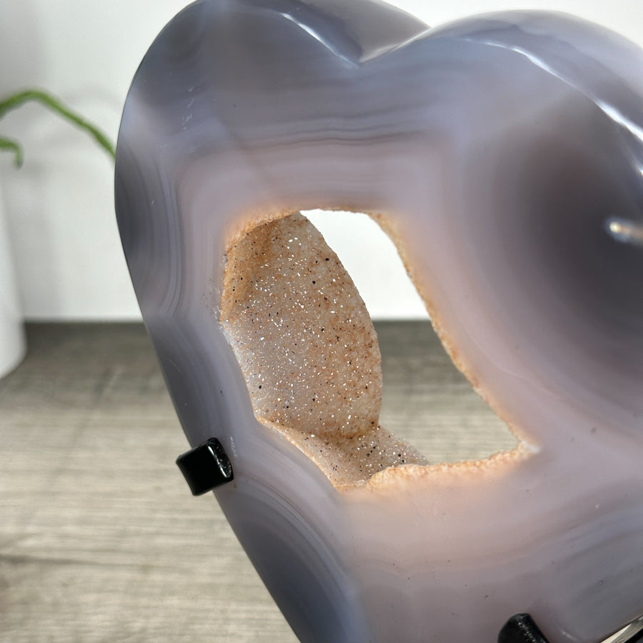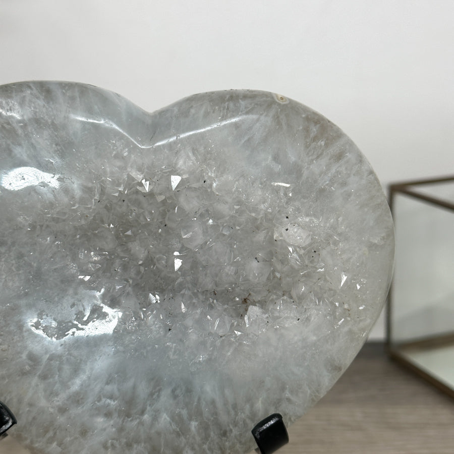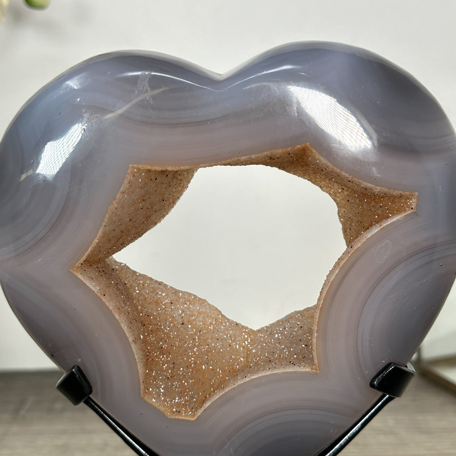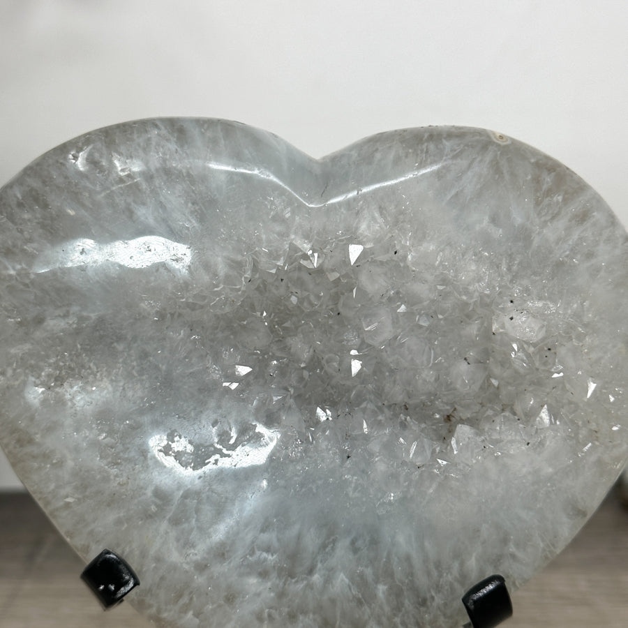 Beautiful Agate & Quartz Druzy Stone Heart Carving - HST0348