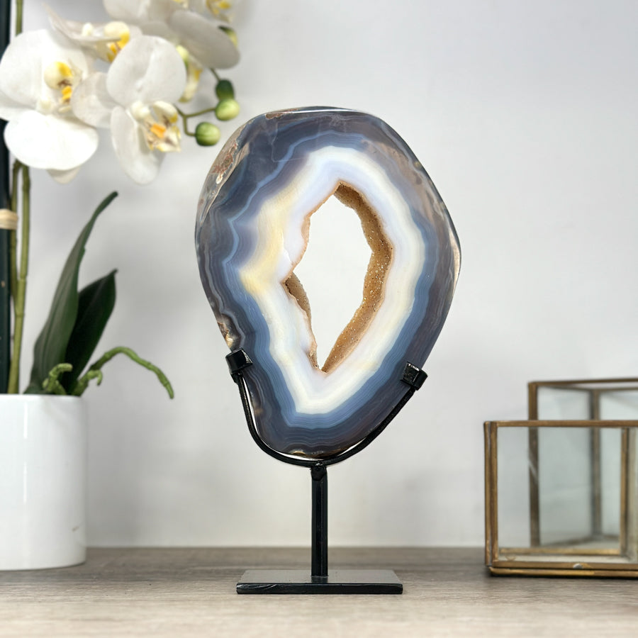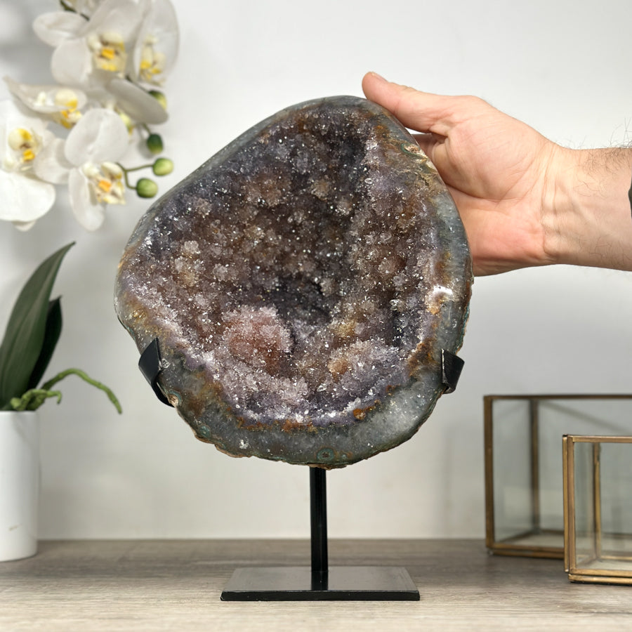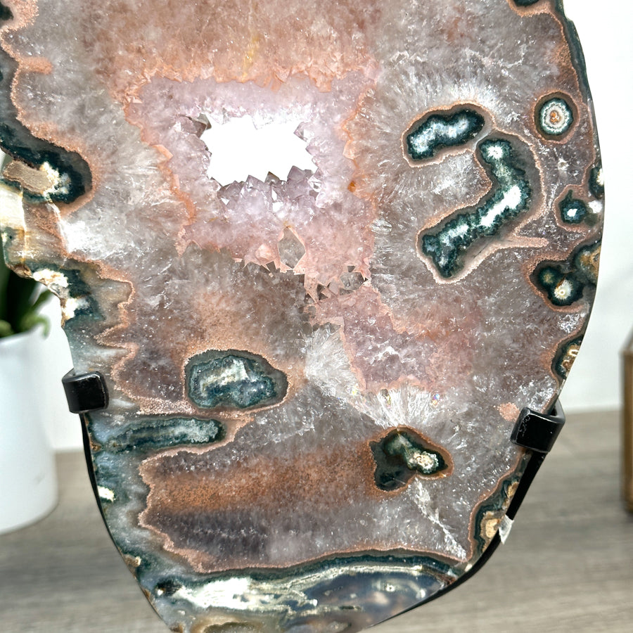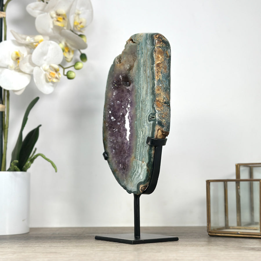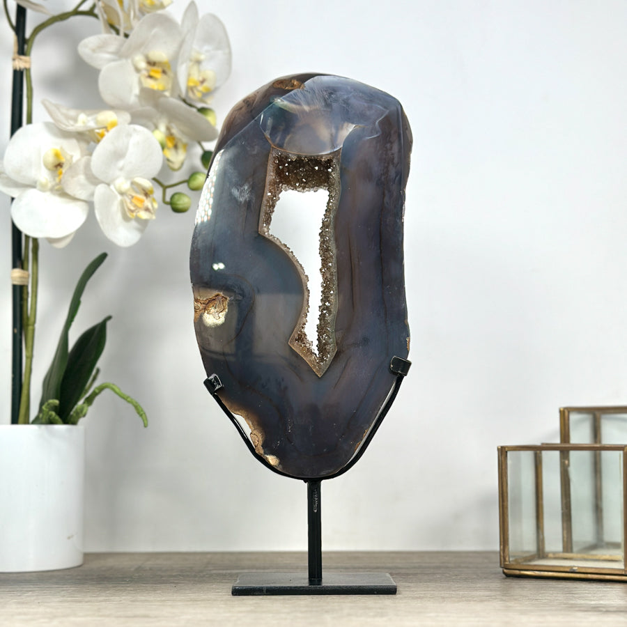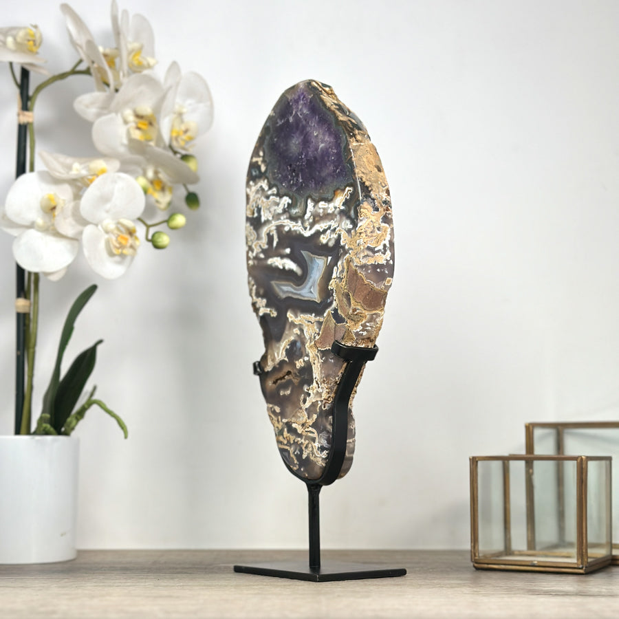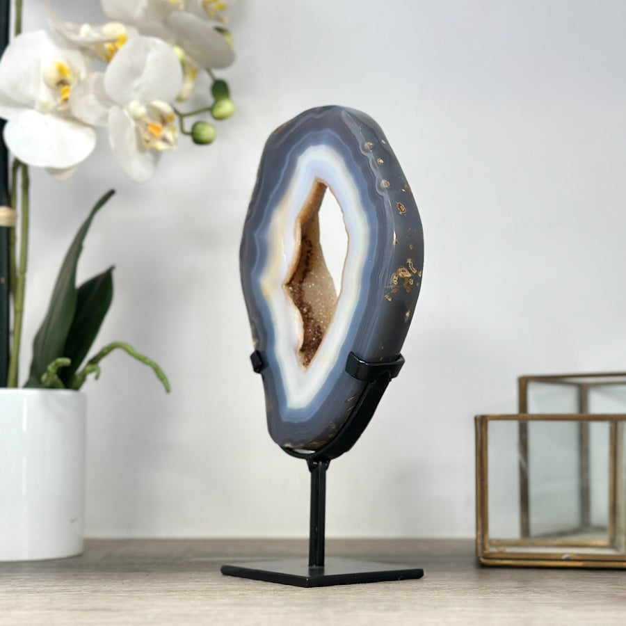 Large Agate Geode Slice with Custom Made Metallic Stand - MWS2327