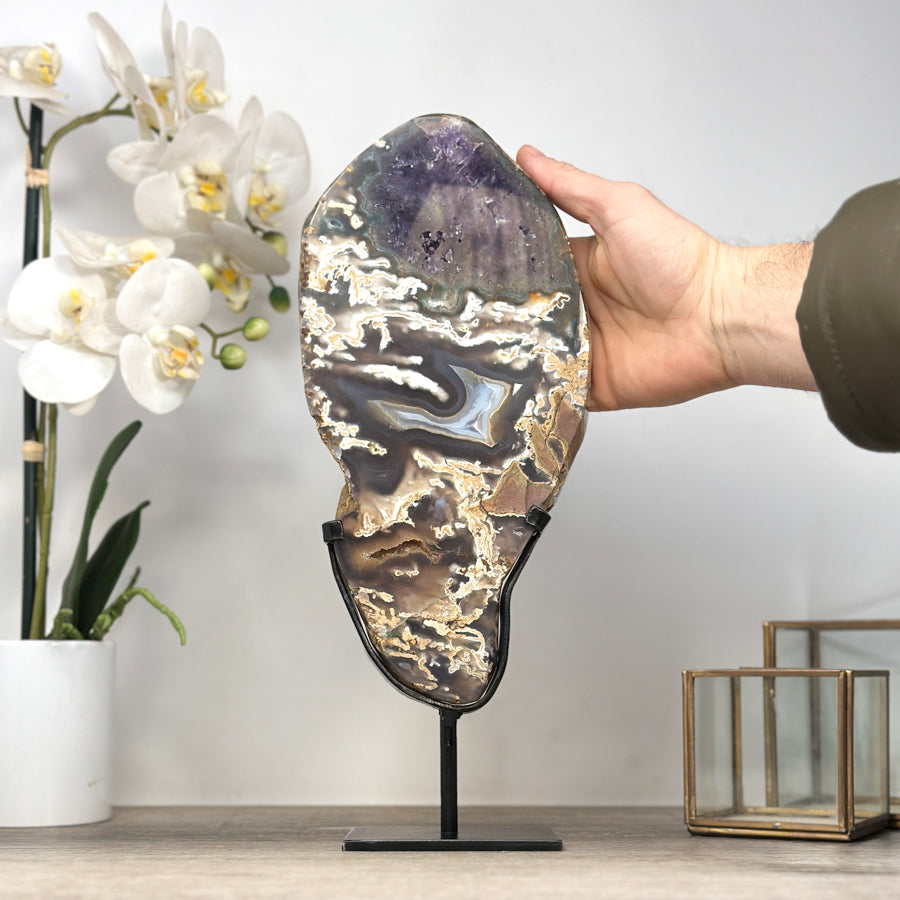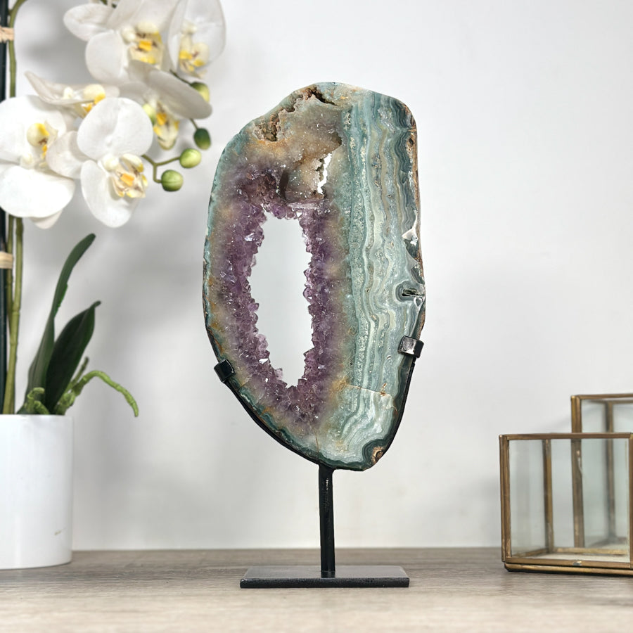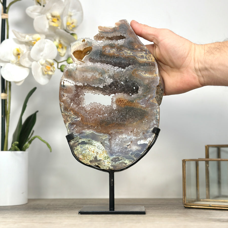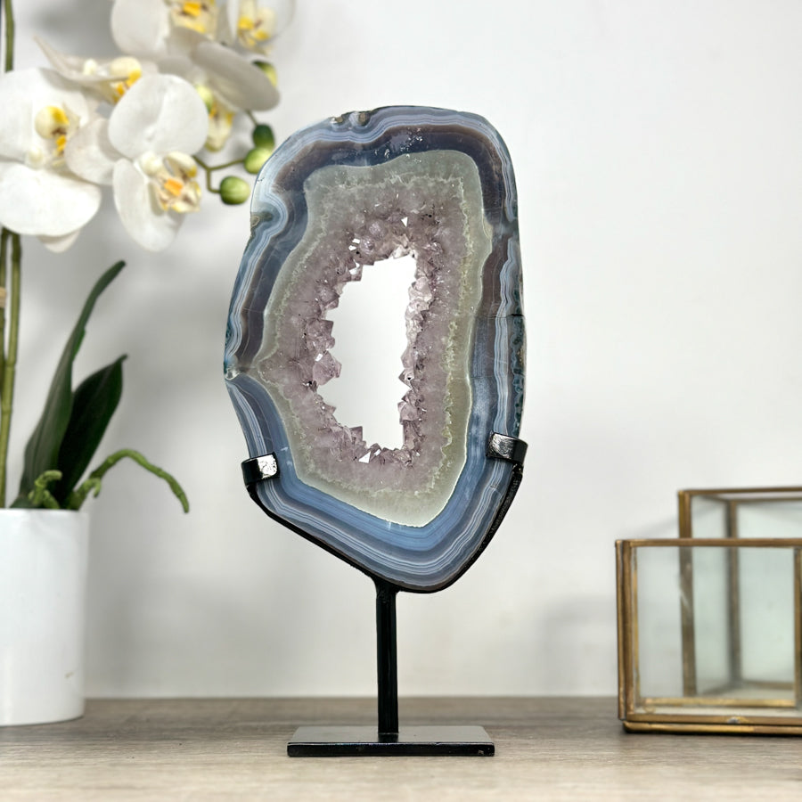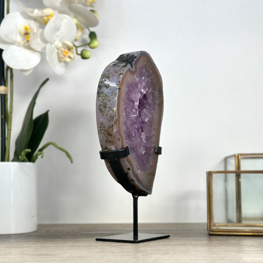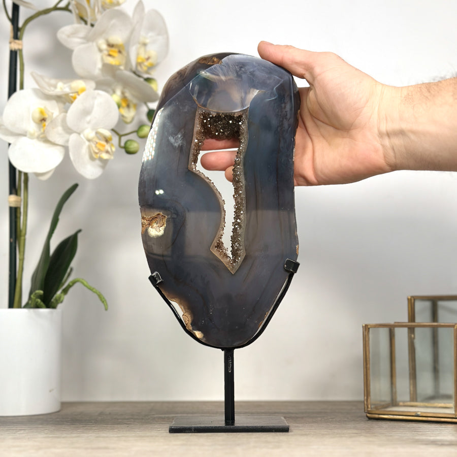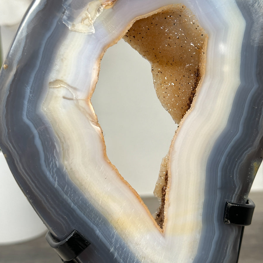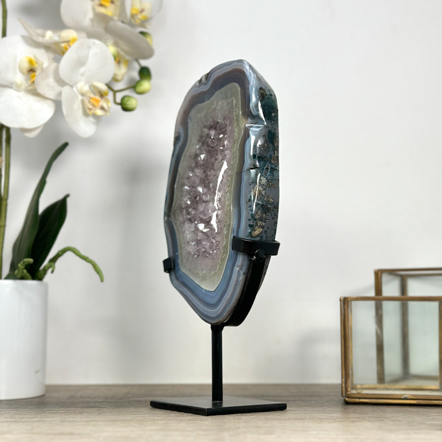 Large Agate Geode Slice with Custom Made Metallic Stand - MWS2327