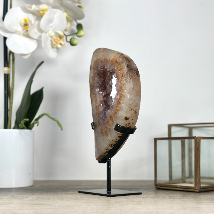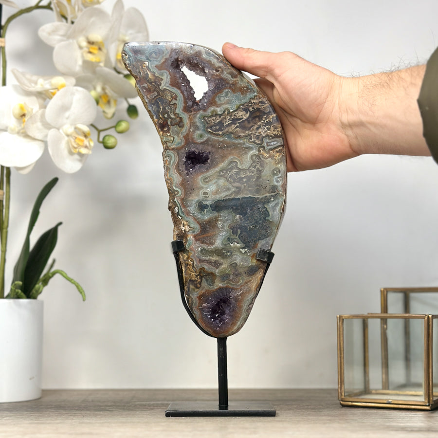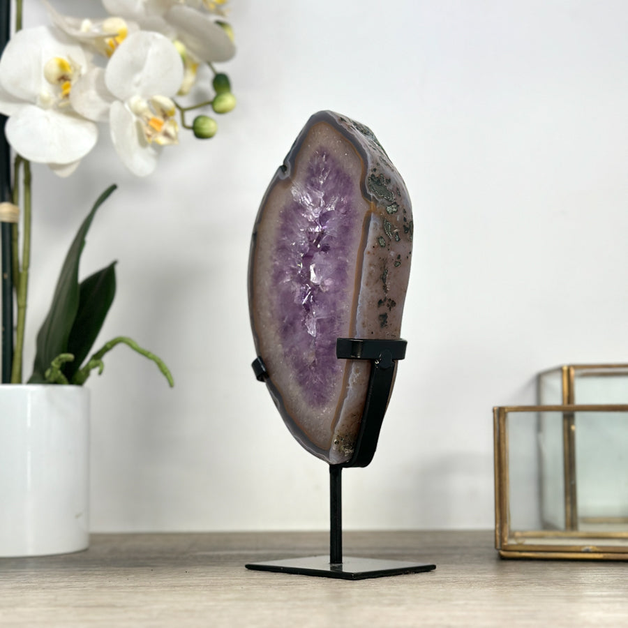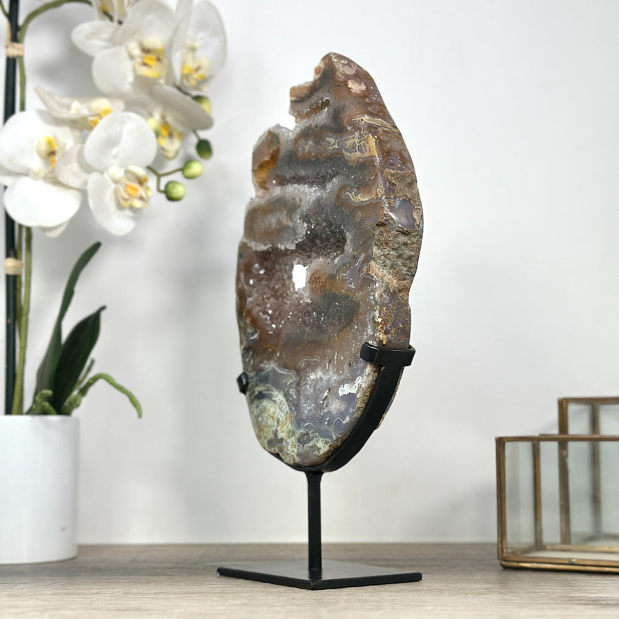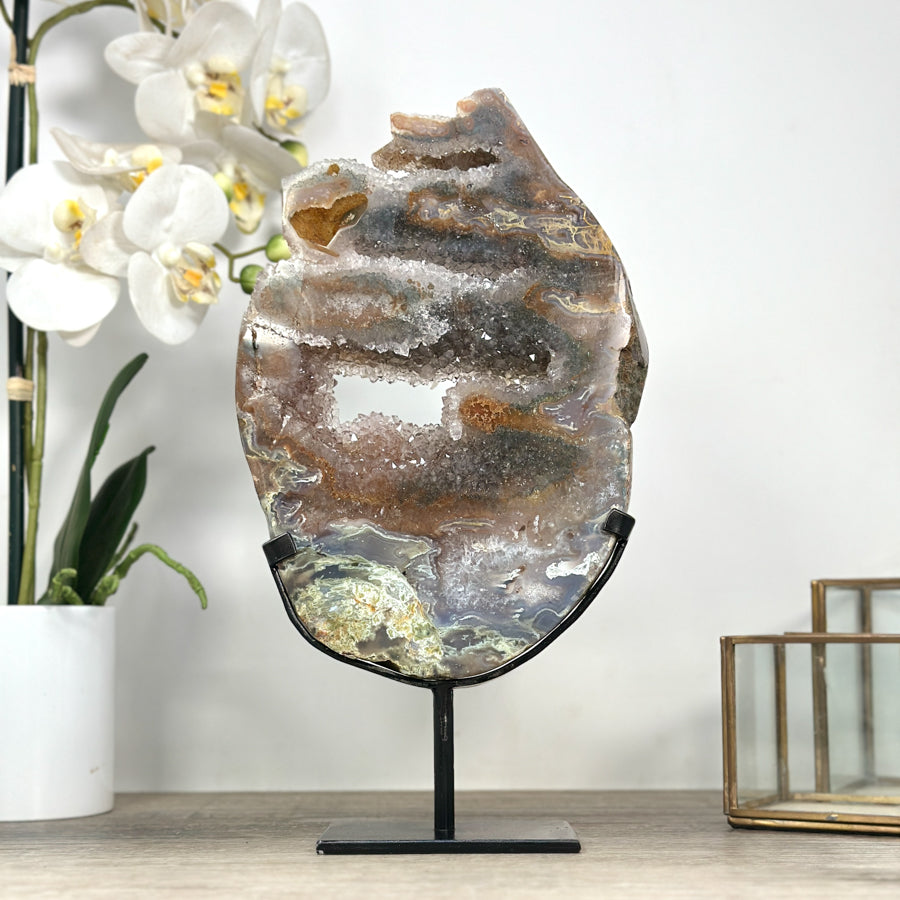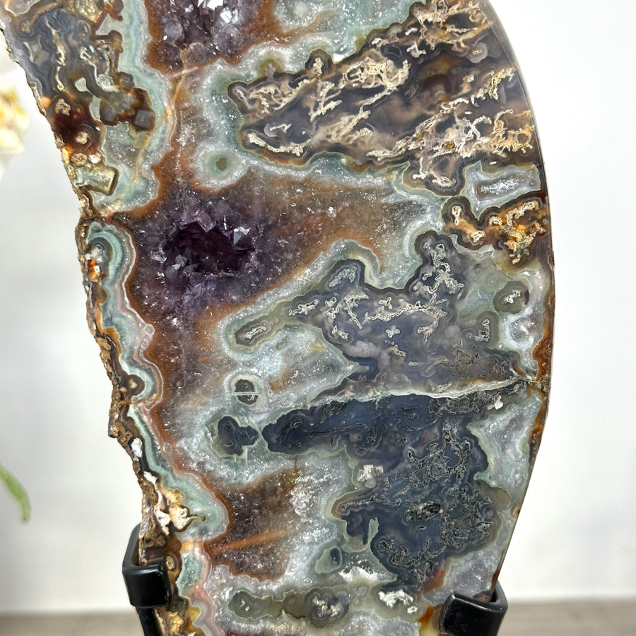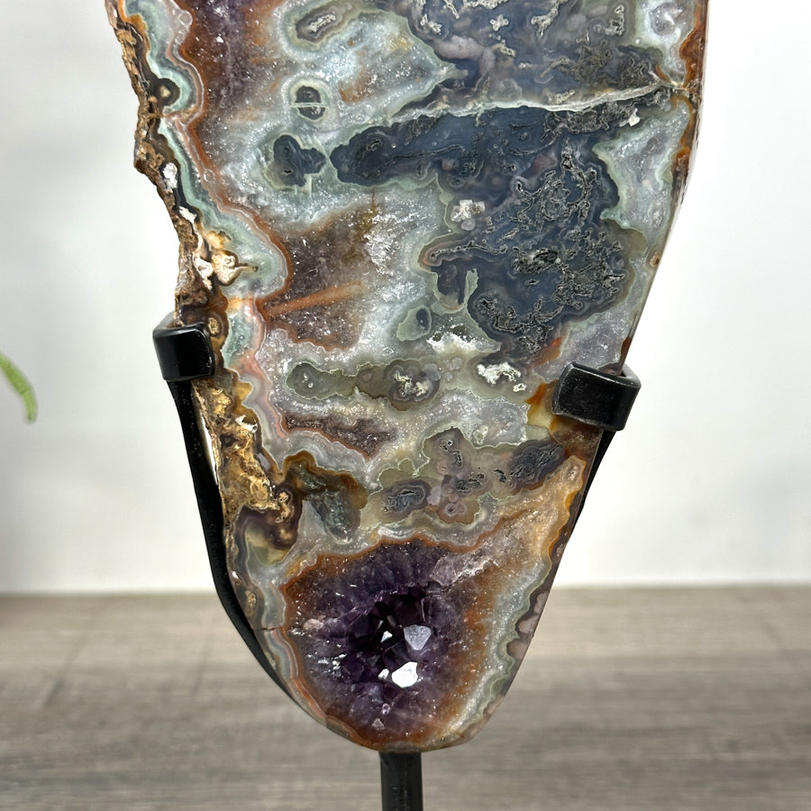 Large Agate Geode Slice with Custom Made Metallic Stand - MWS2327