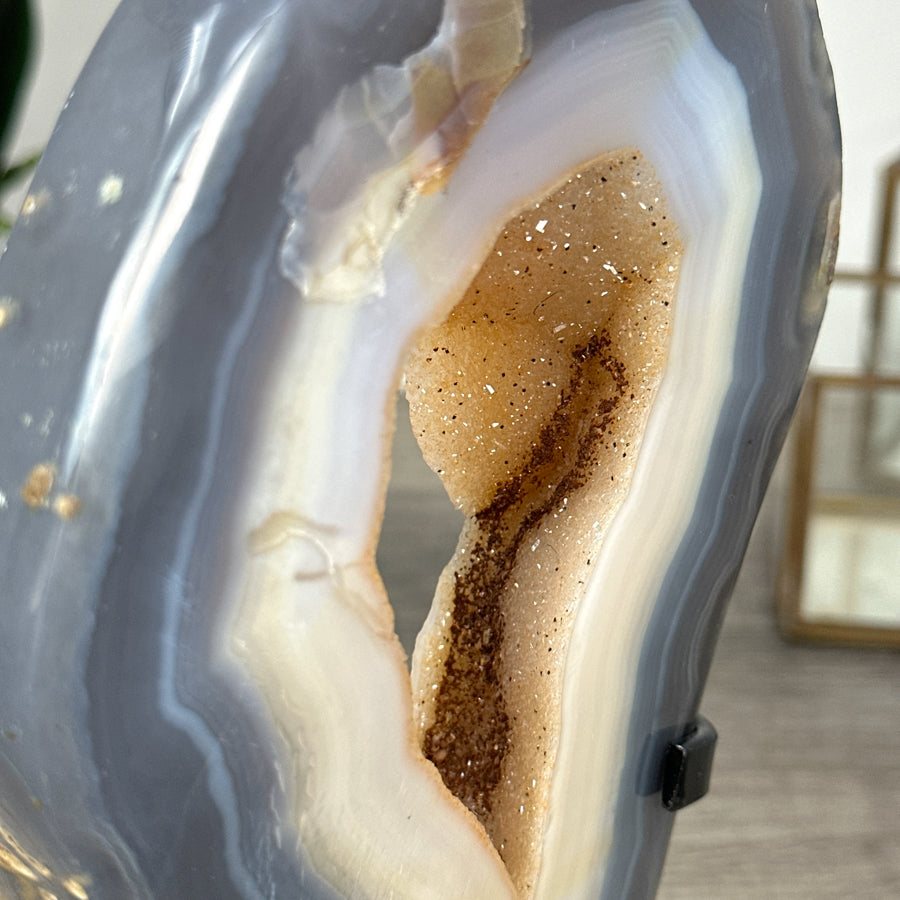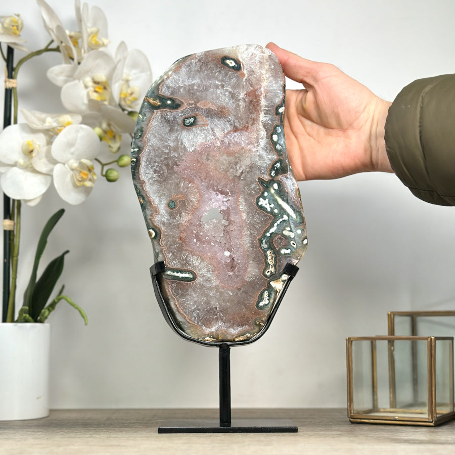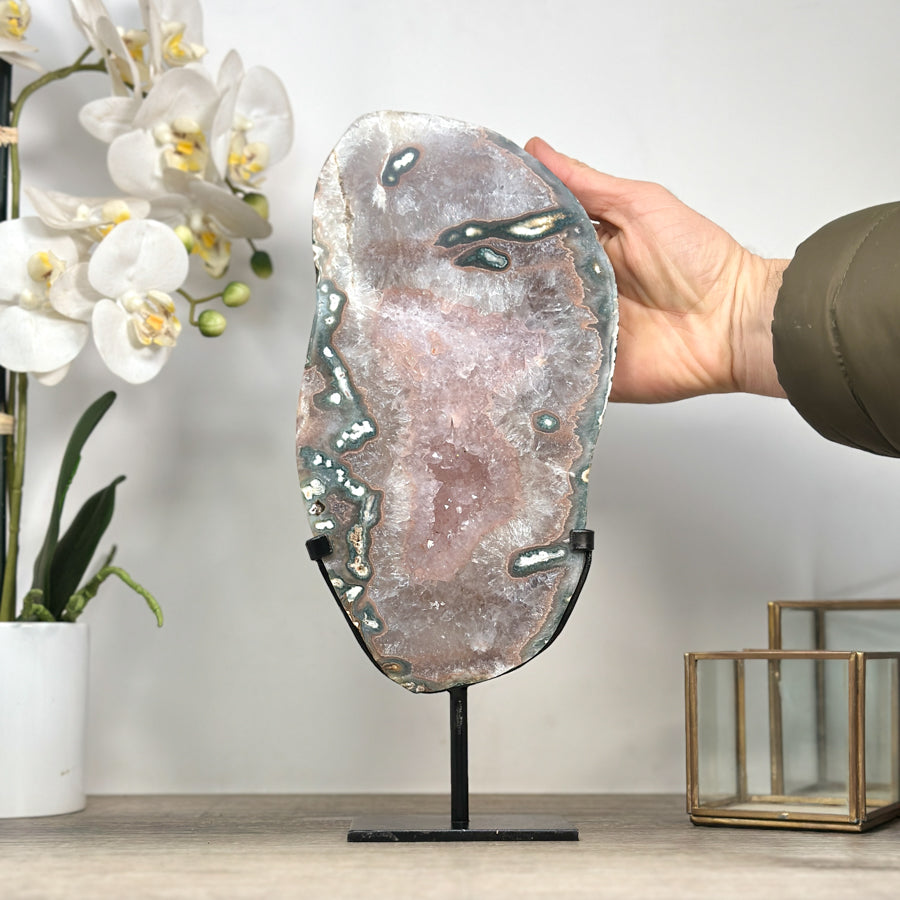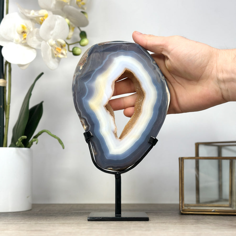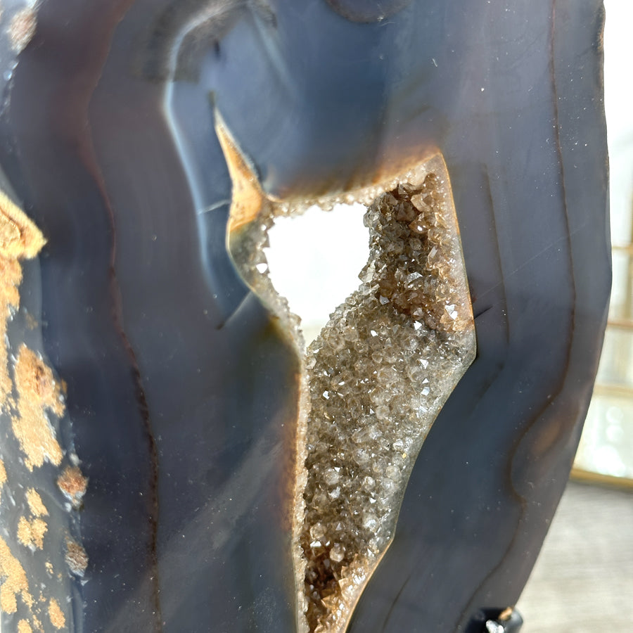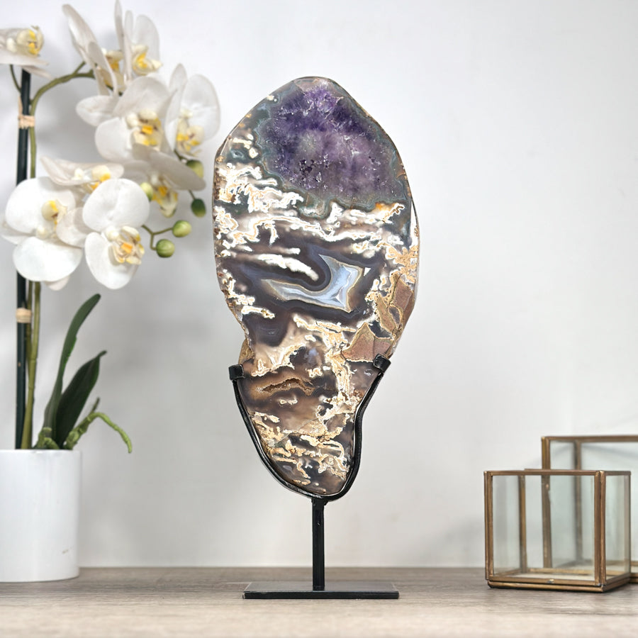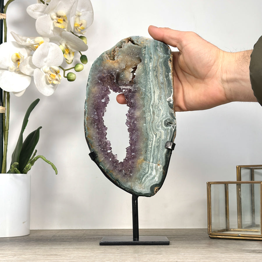 Large Agate Geode Slice with Custom Made Metallic Stand - MWS2327