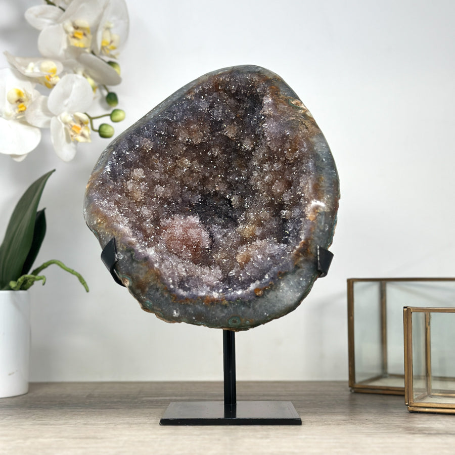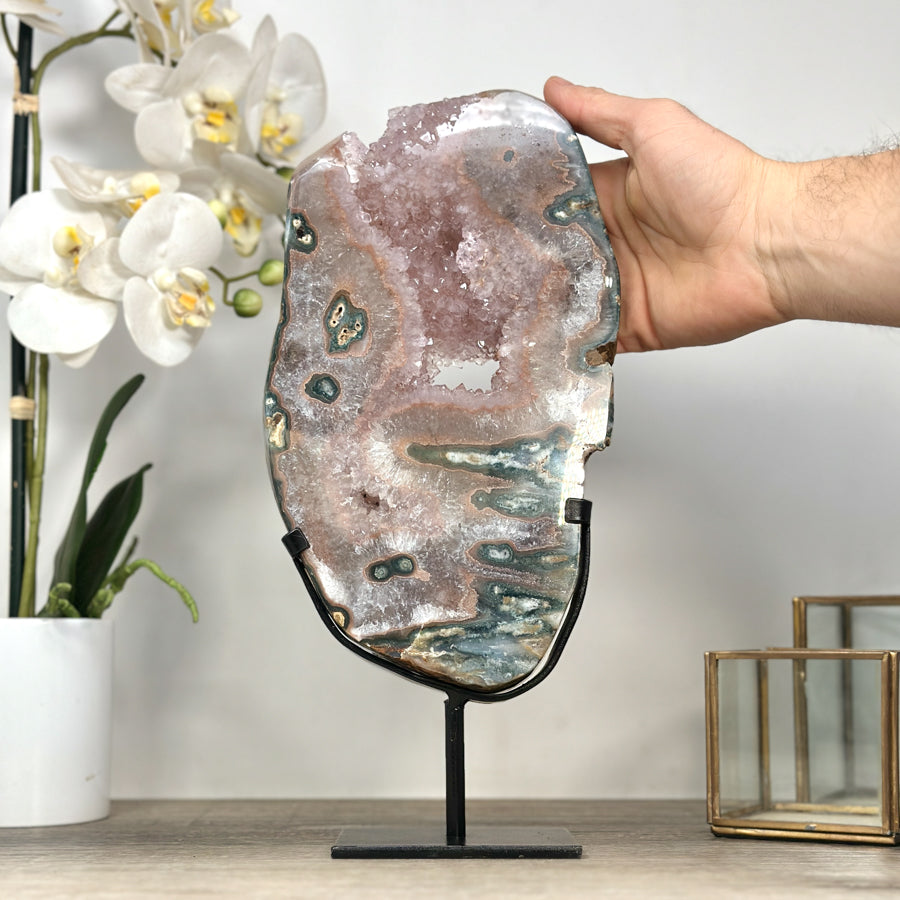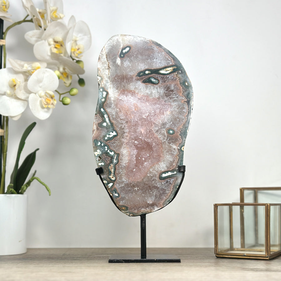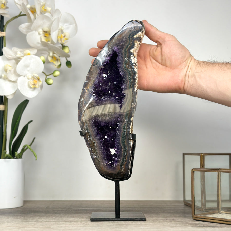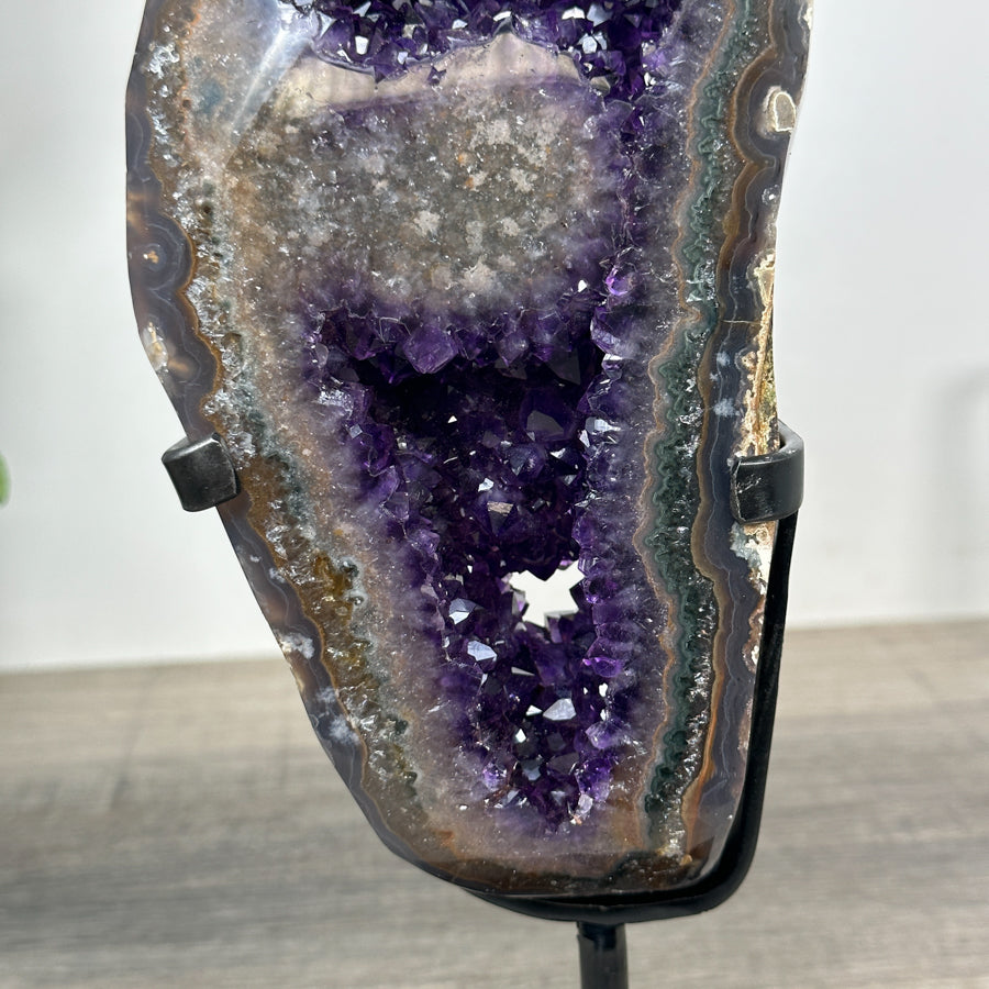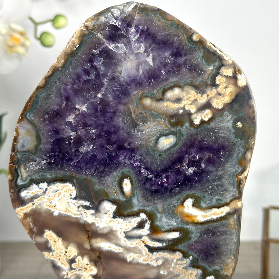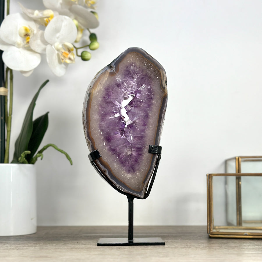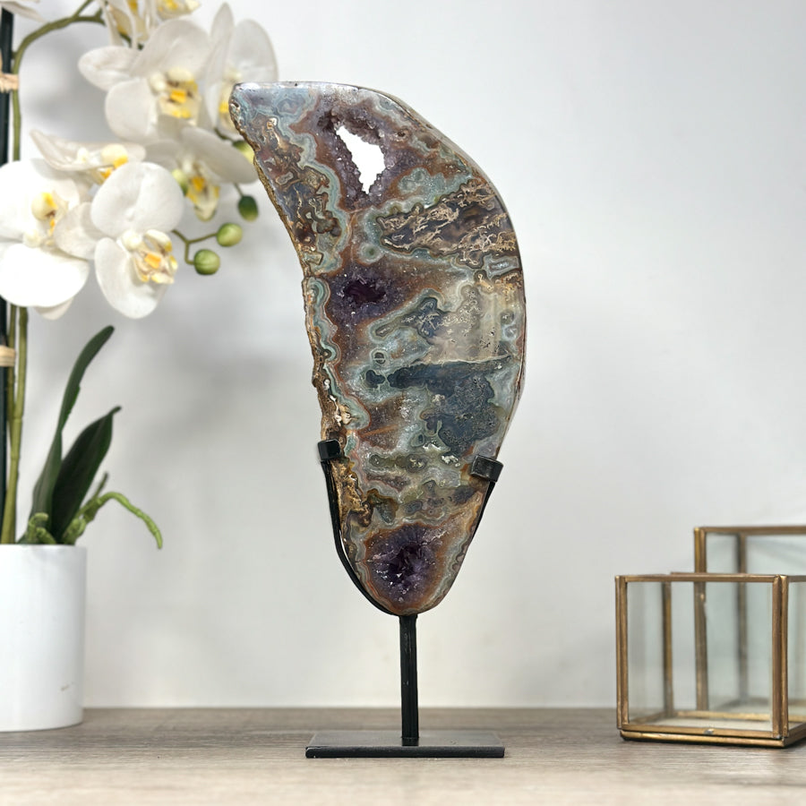 Large Agate Geode Slice with Custom Made Metallic Stand - MWS2327