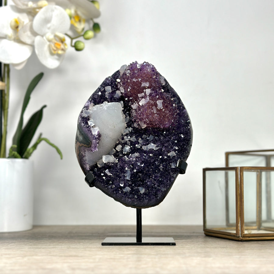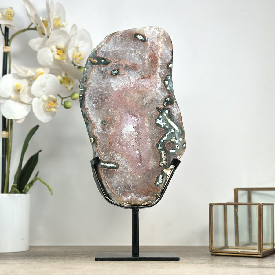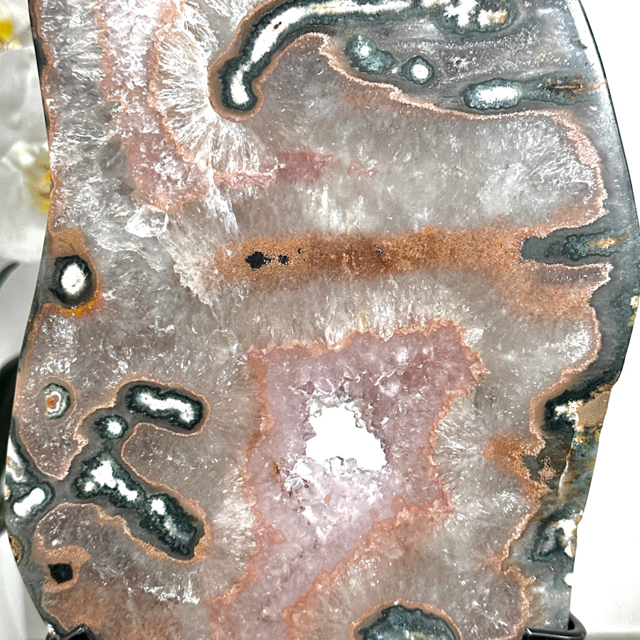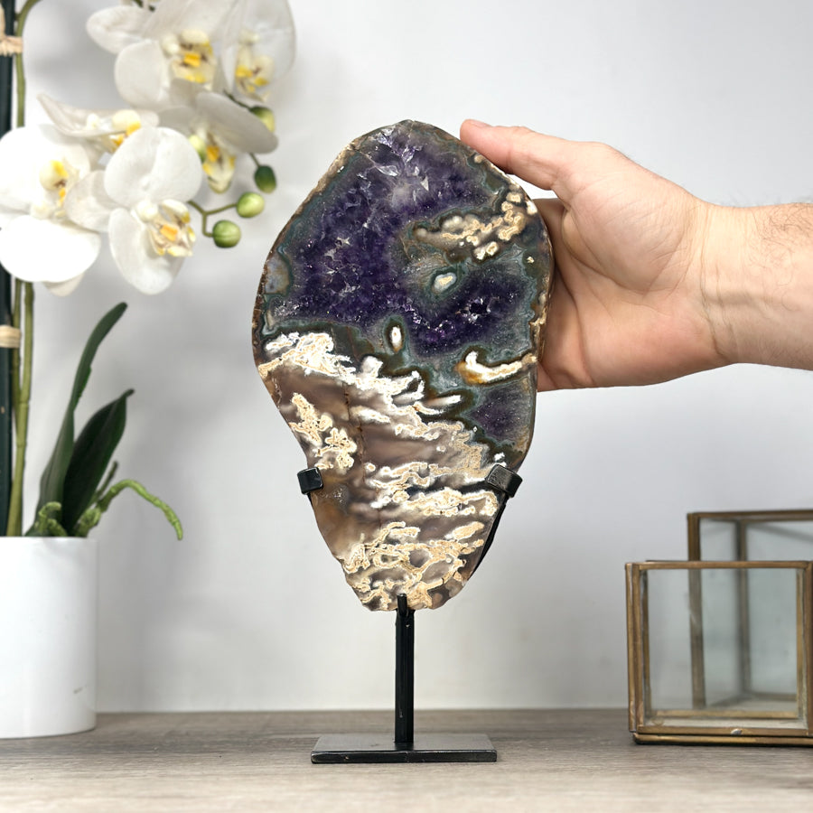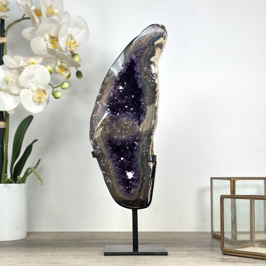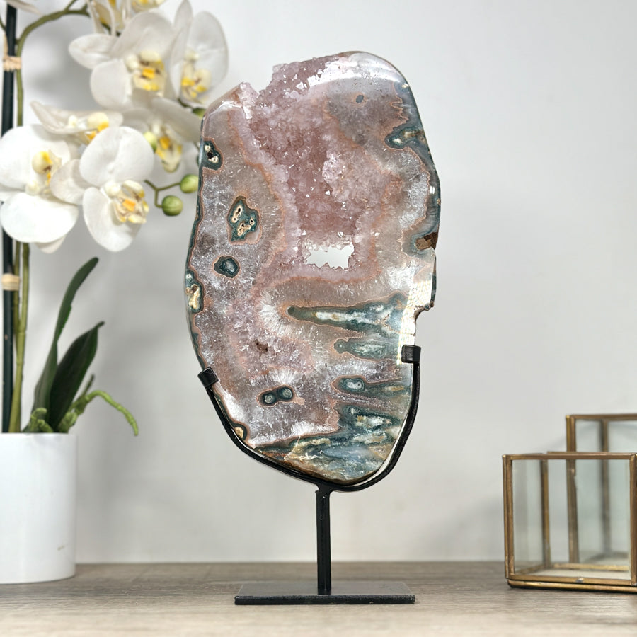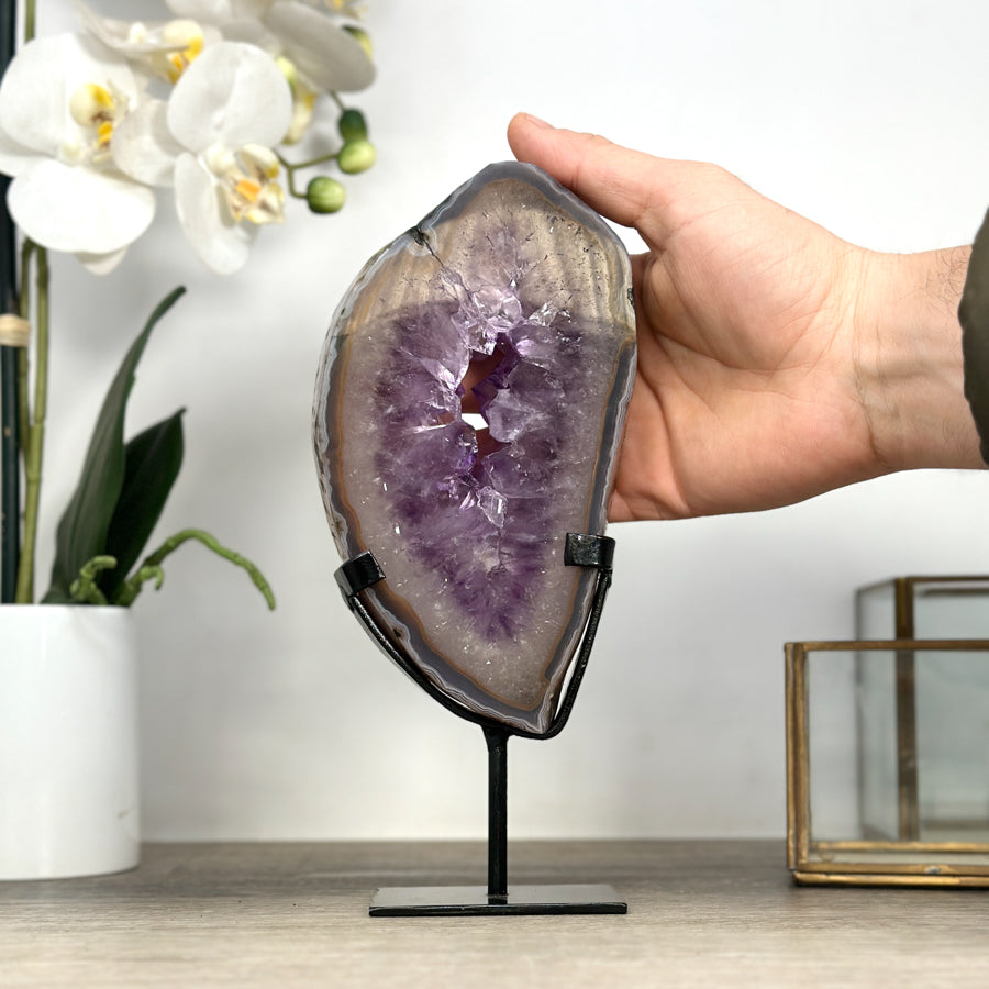 Large Agate Geode Slice with Custom Made Metallic Stand - MWS2327