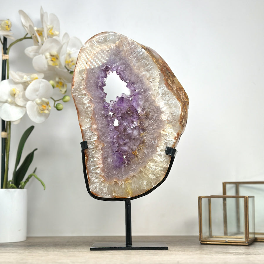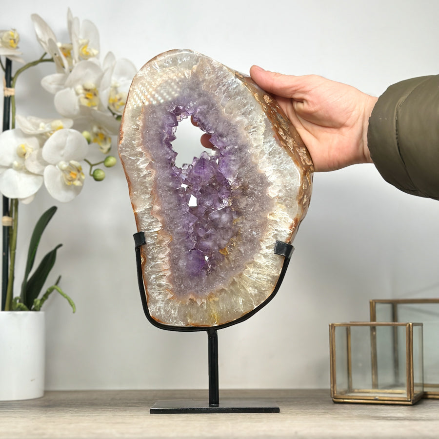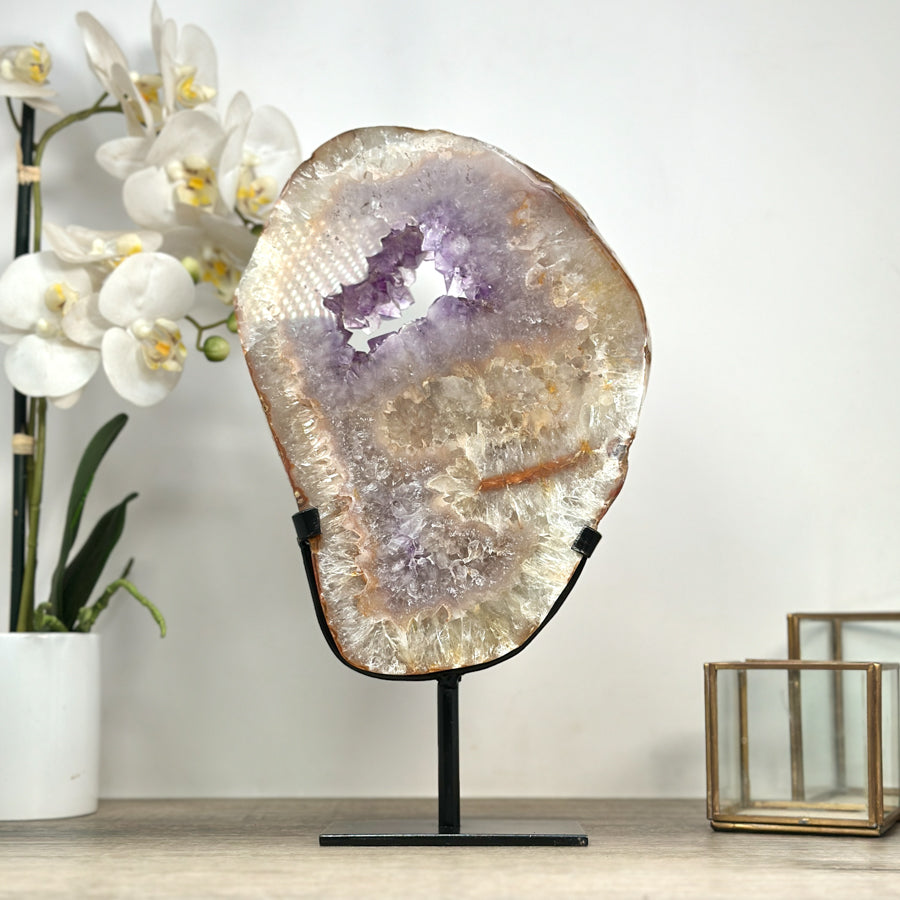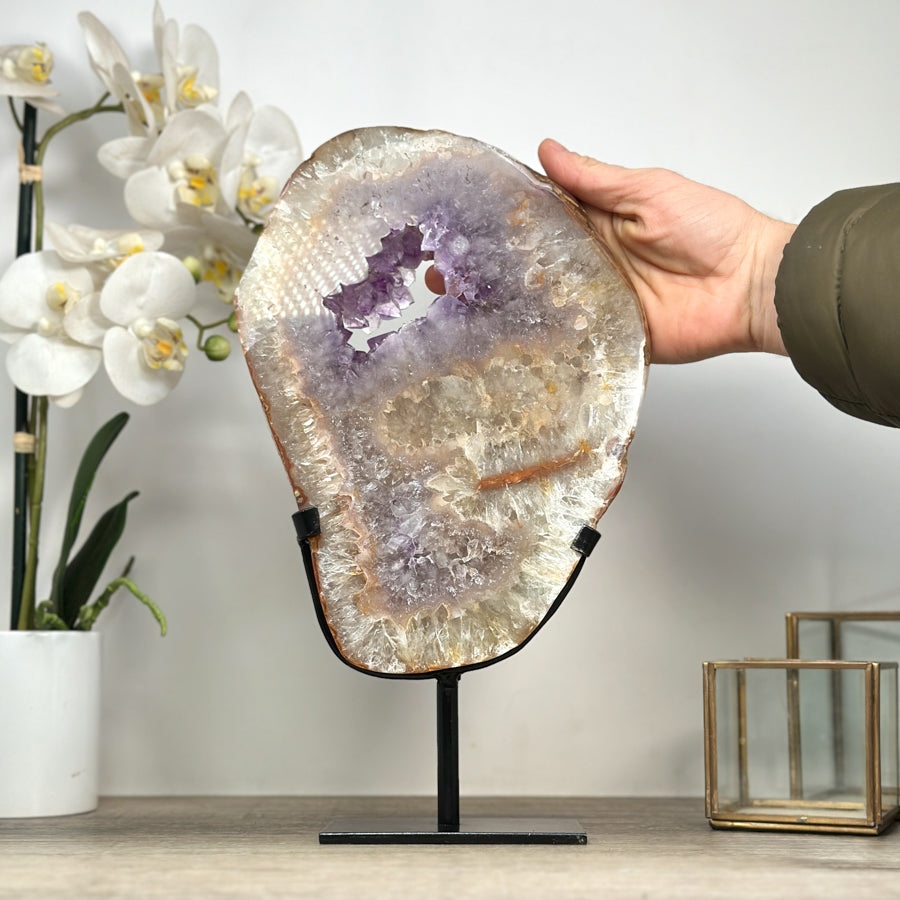 XXL Amethyst & Quartz Geode Slice Portal, Stand included - MWS2334