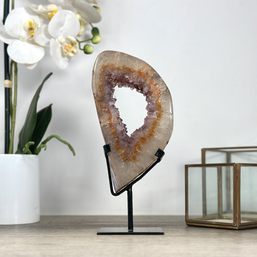 Stunning Natural Quartz Slice Portal, Metallic Stand included - MWS2326