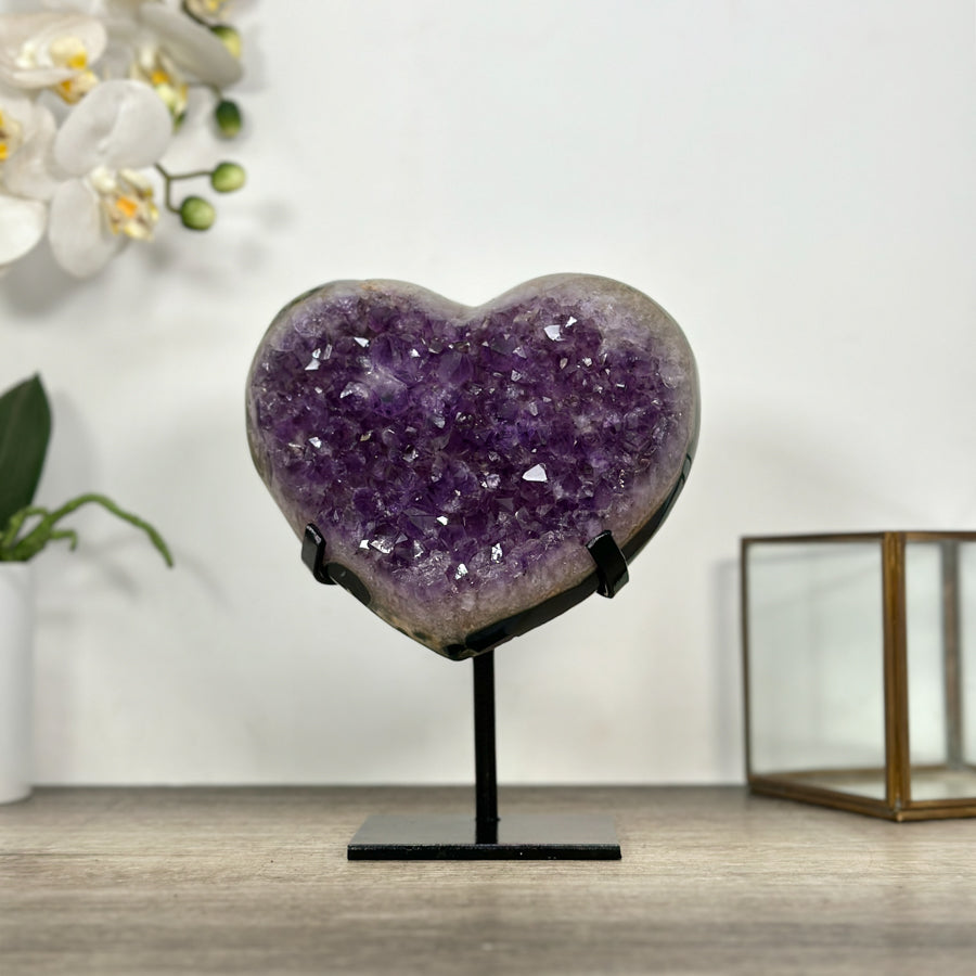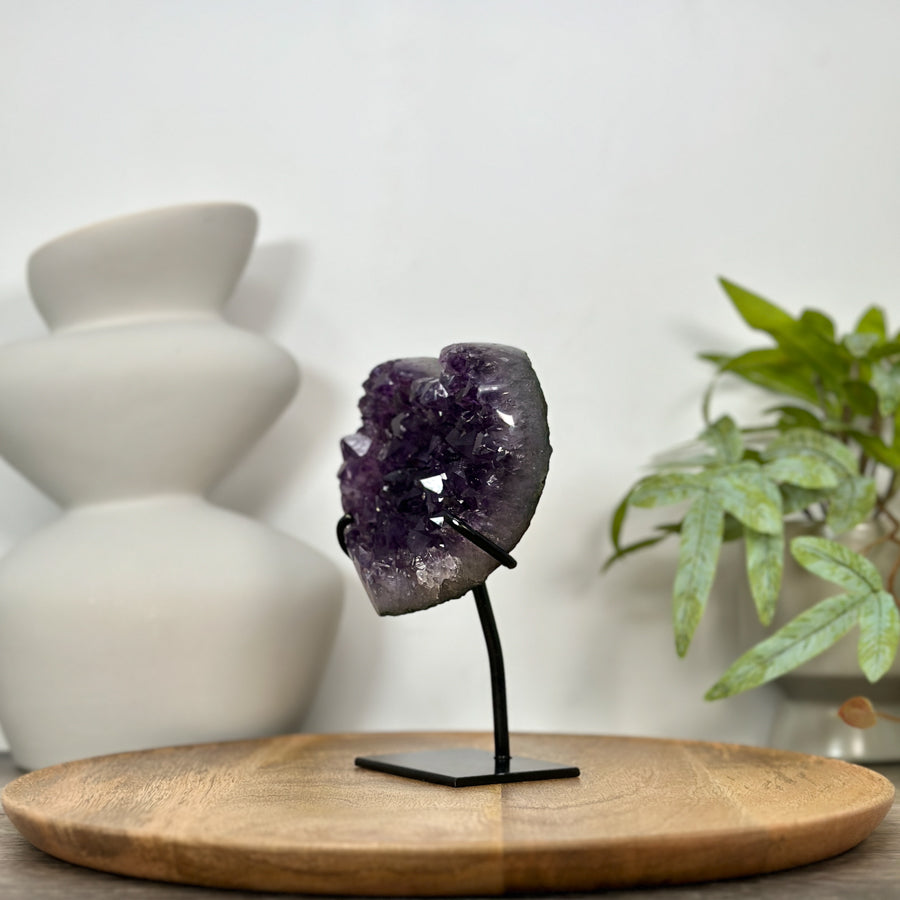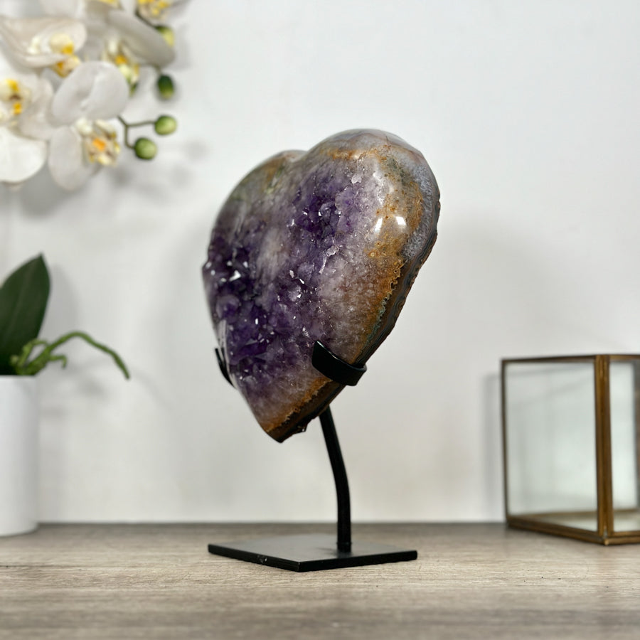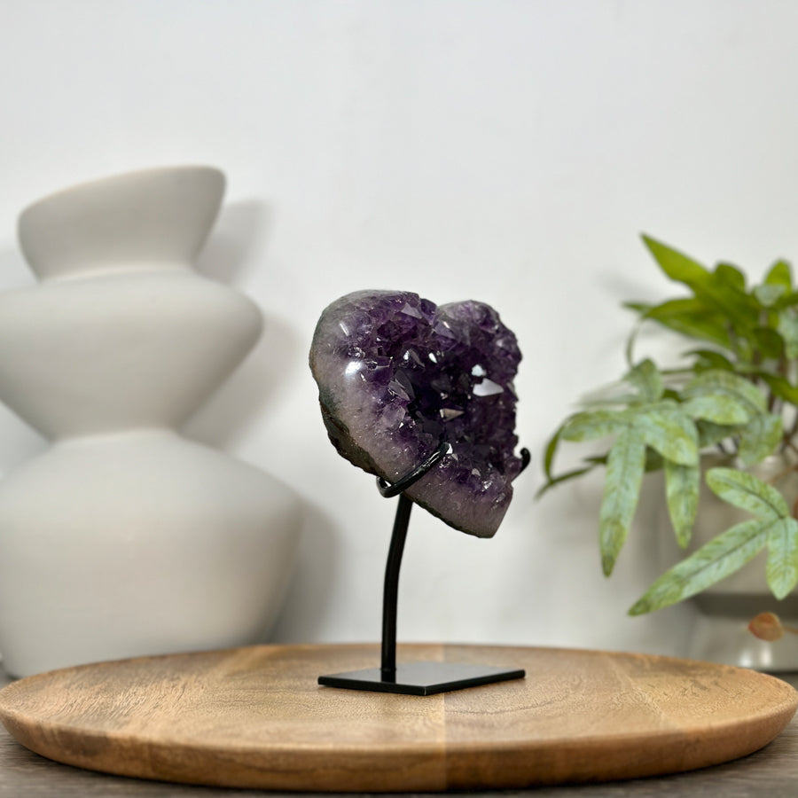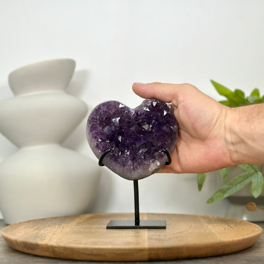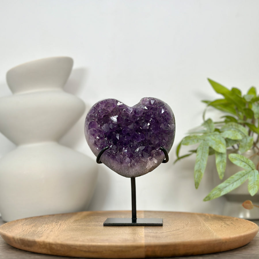 Natural Amethyst Crystal Heart with Metal Stand - HST0345