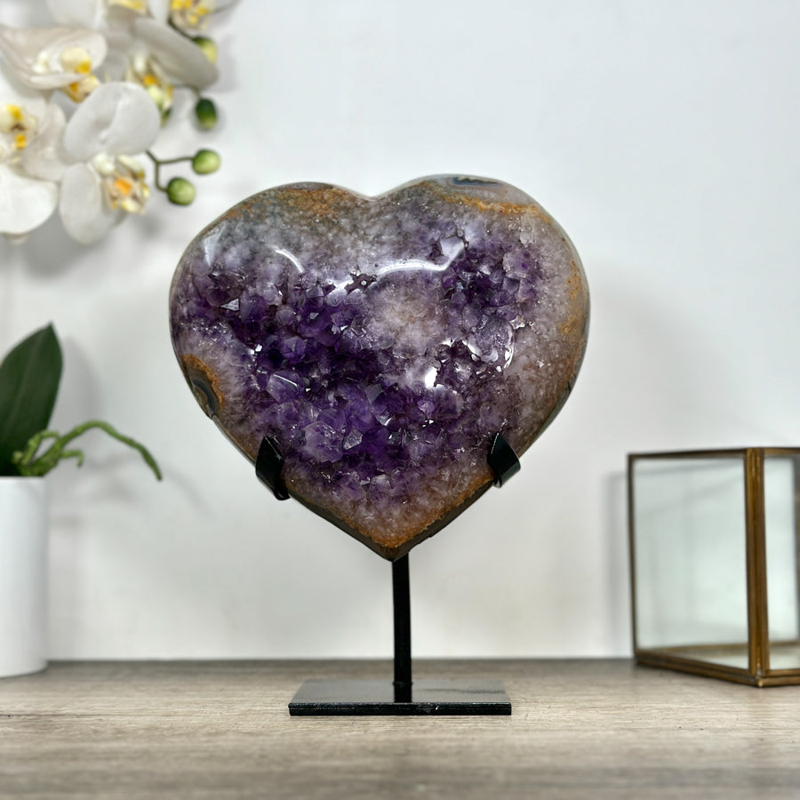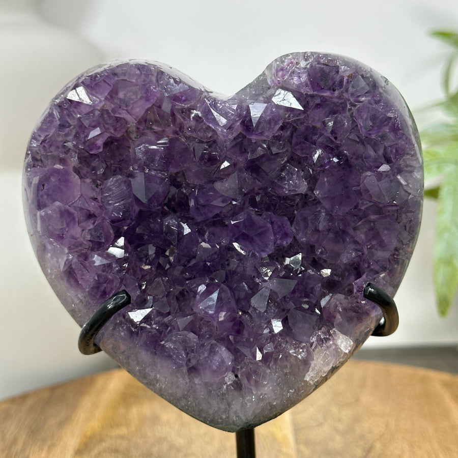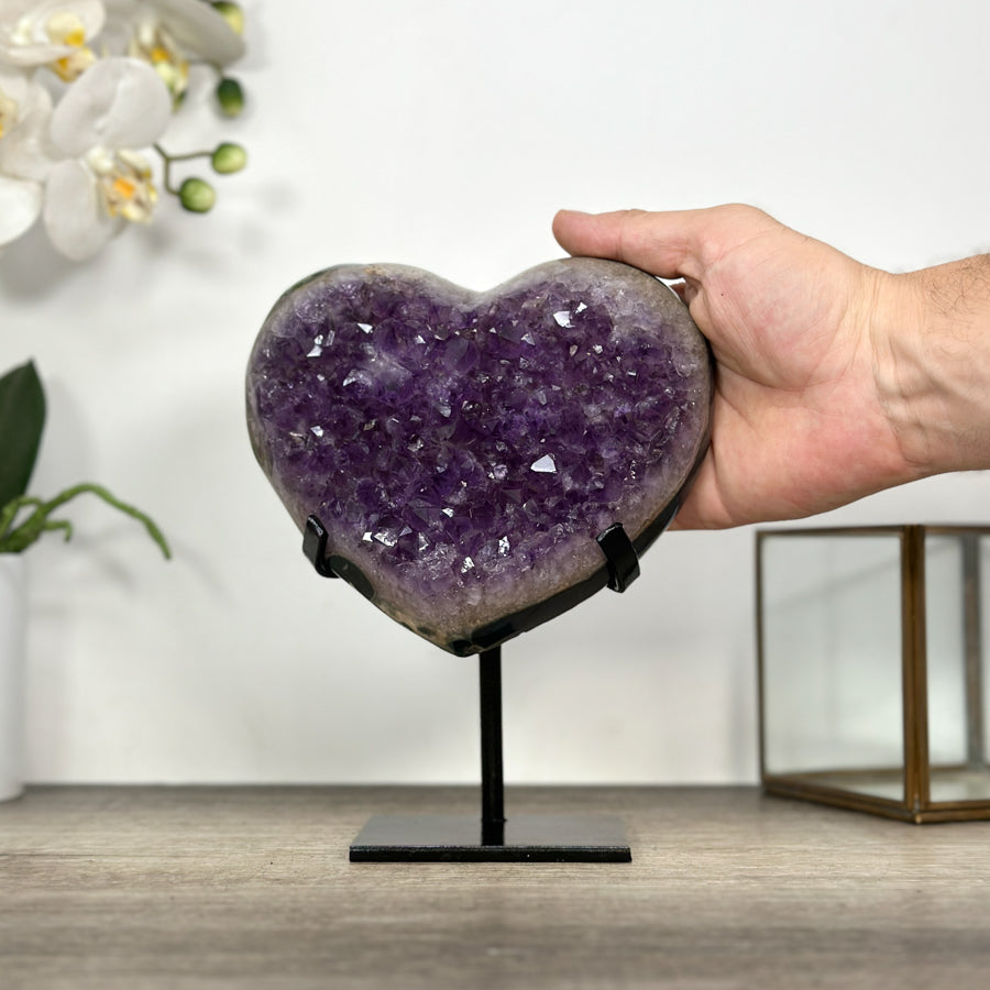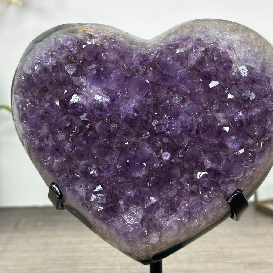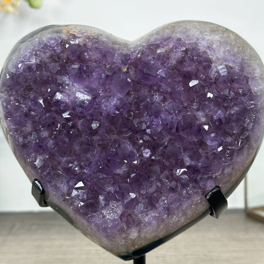 Natural Amethyst Crystal Heart with Metal Stand - HST0345