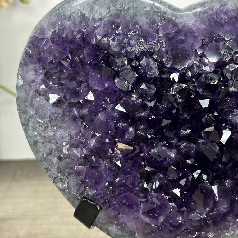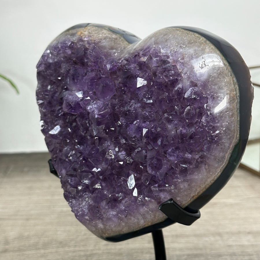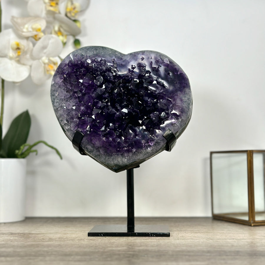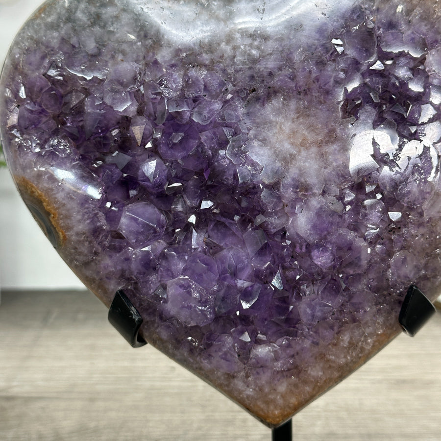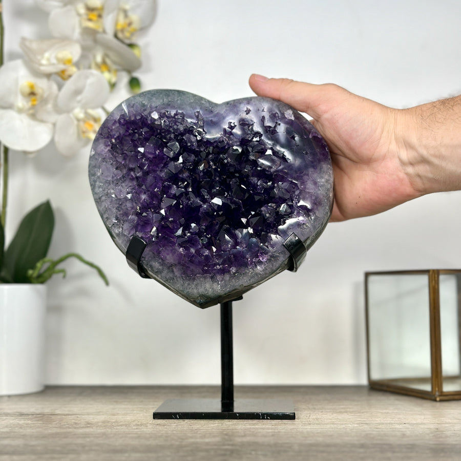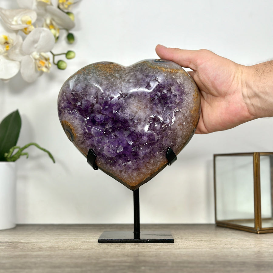 Natural Amethyst Crystal Heart with Metal Stand - HST0345