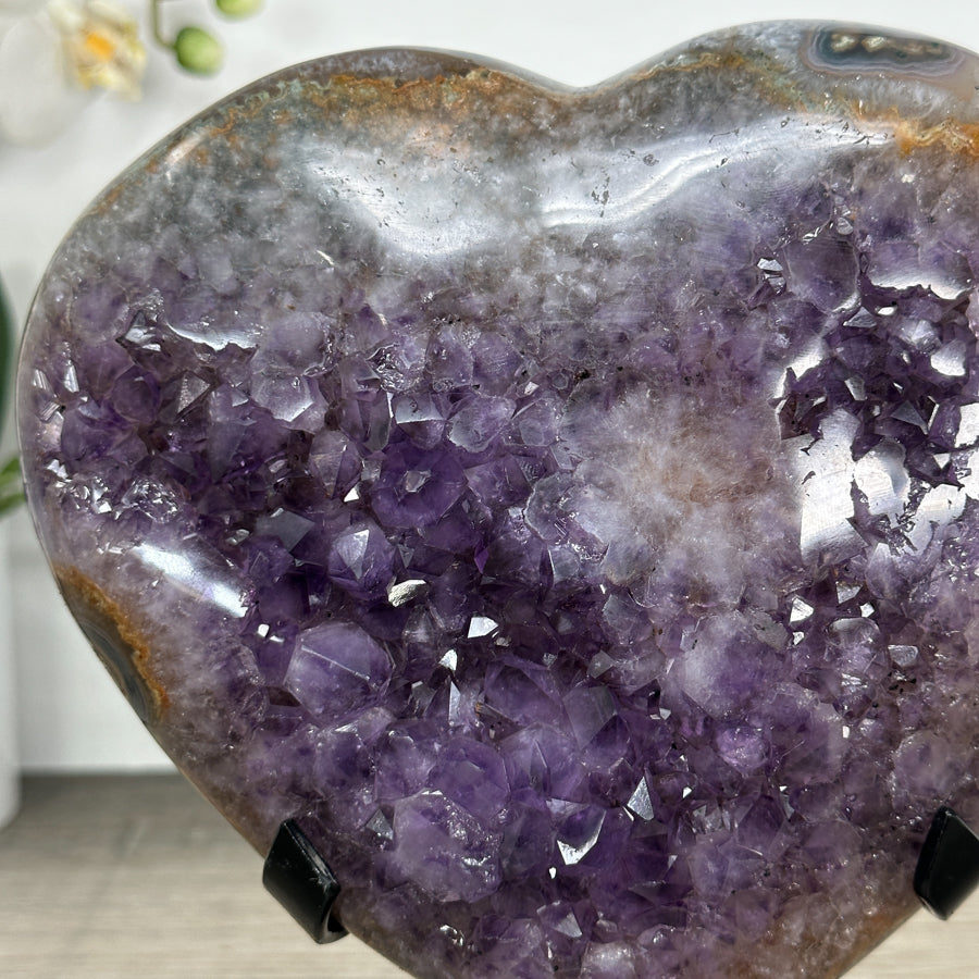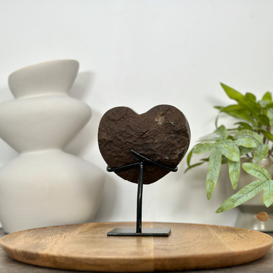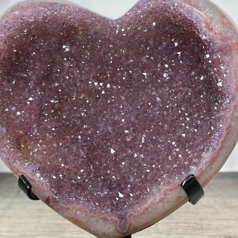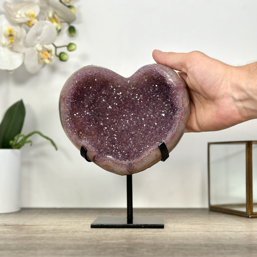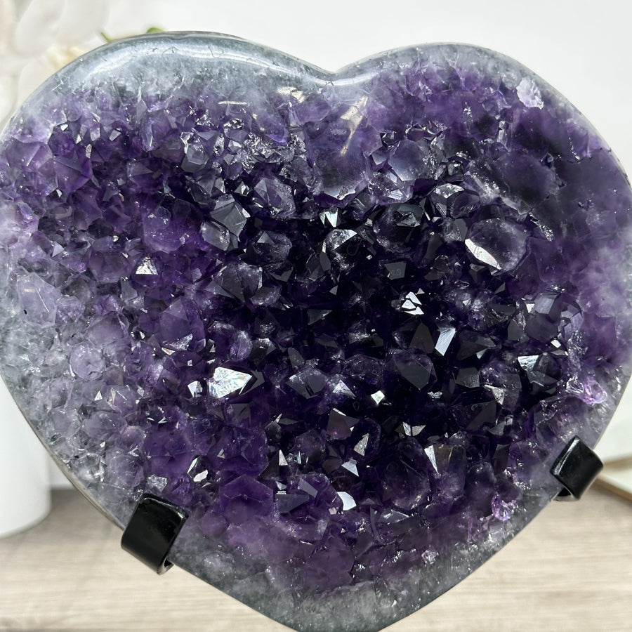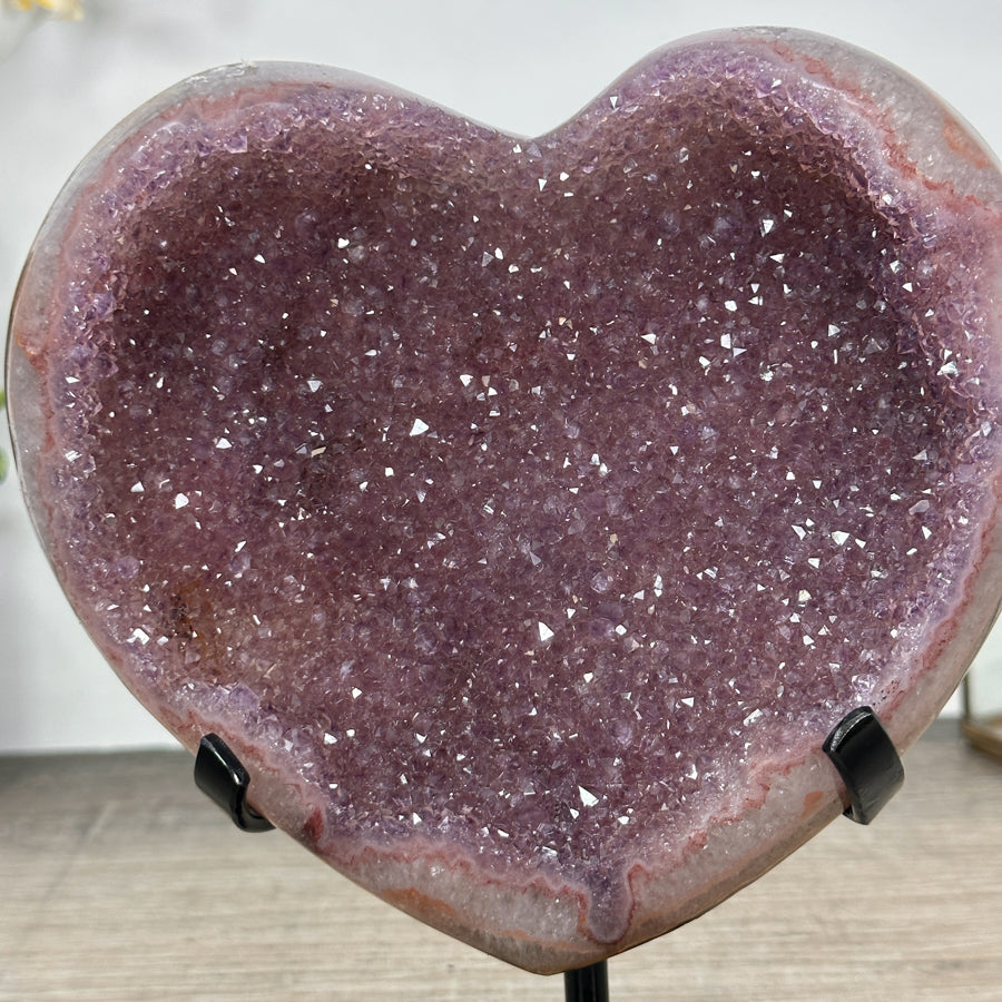 Natural Amethyst Crystal Heart with Metal Stand - HST0345