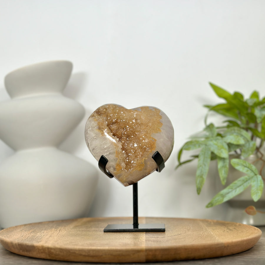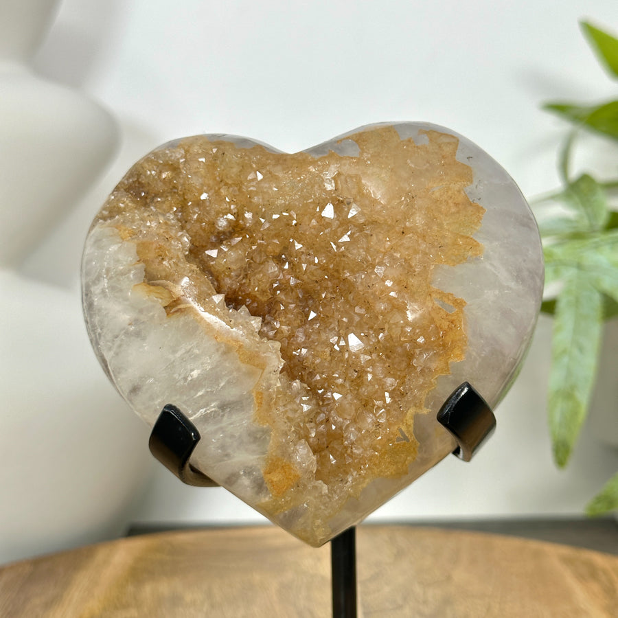 Natural Yellow Quartz Stone Heart, Stand Included - HST0346