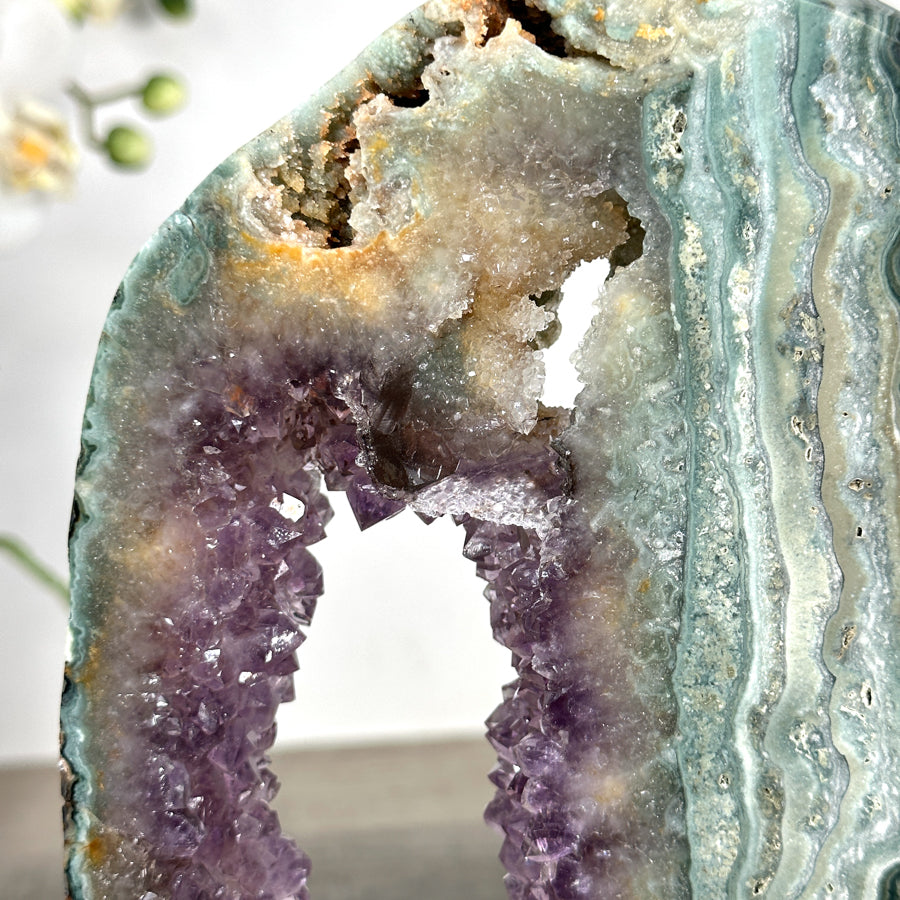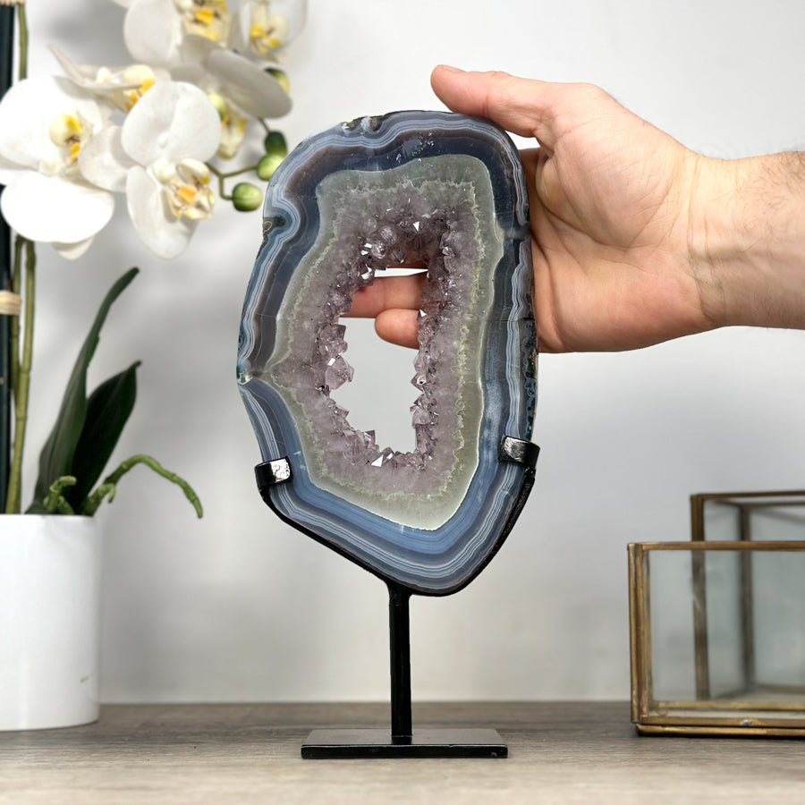 Blue Banded agate & Amethyst Stone Portal, Stand Included - MWS2322