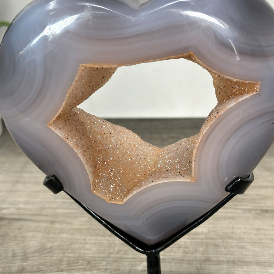 Natural Blue Agate & Orange Tone Druzy Heart Portal - HST0340