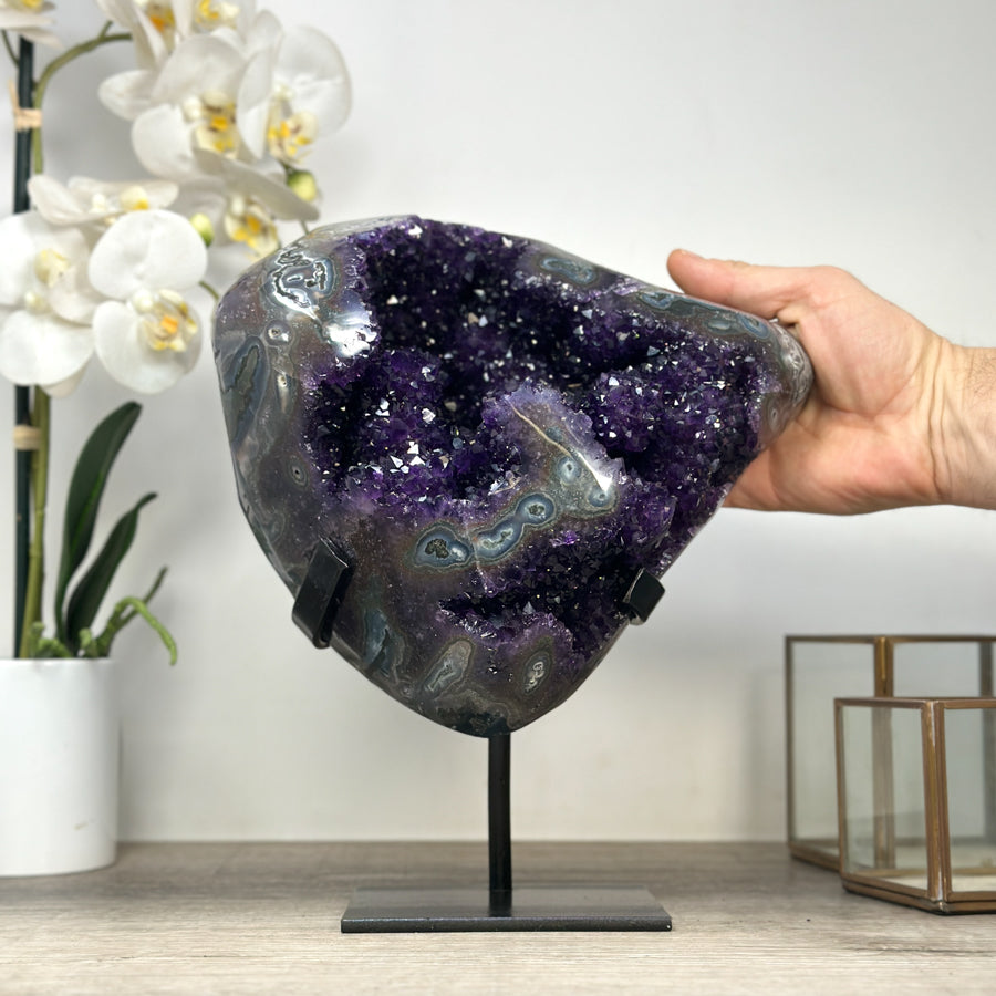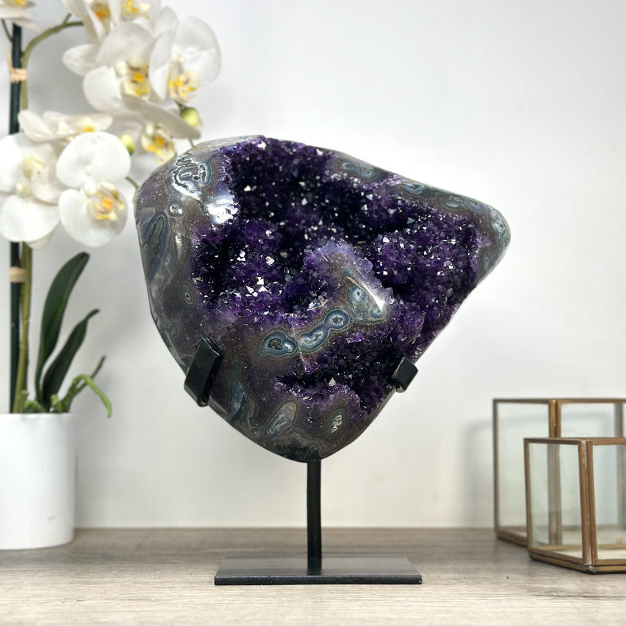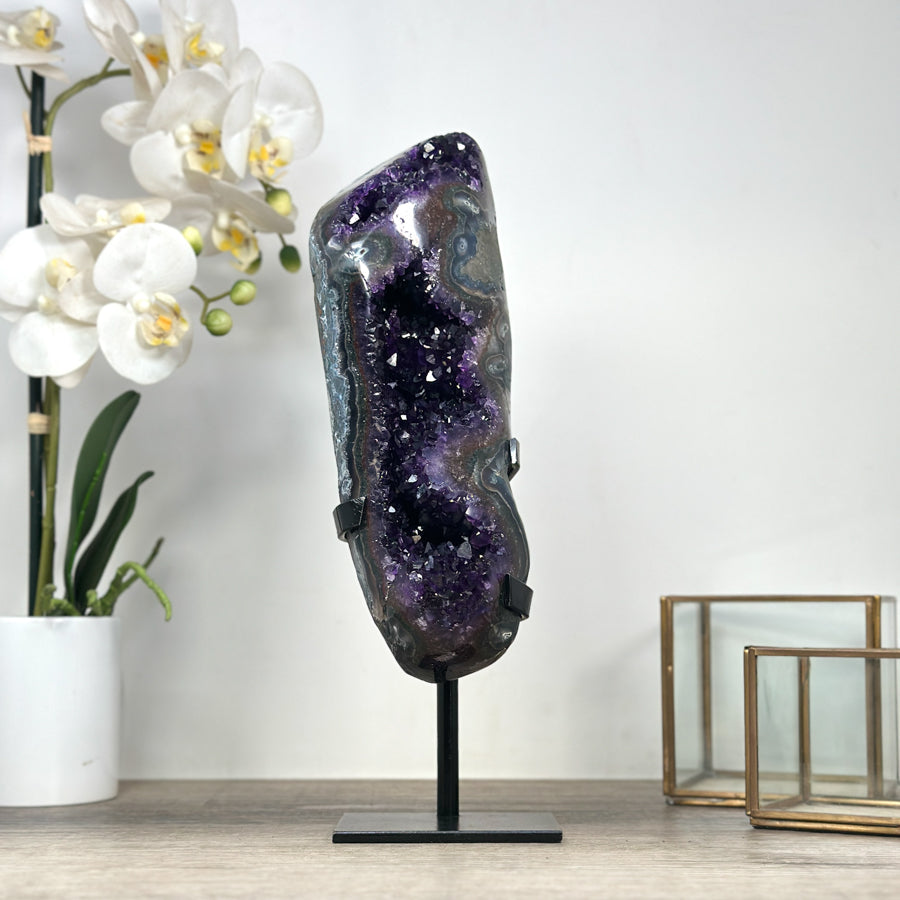 Deep Purple Amethyst Crystal Formation with Metal Stand - MWS2316