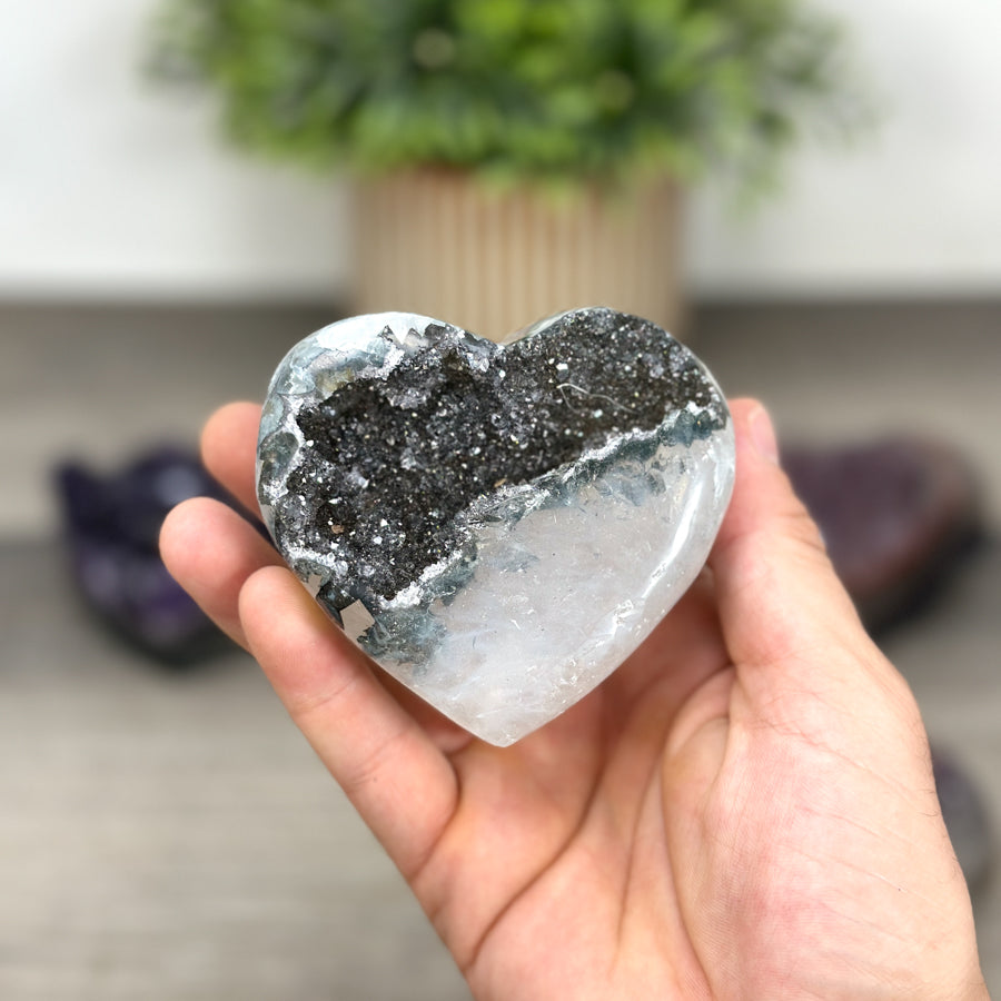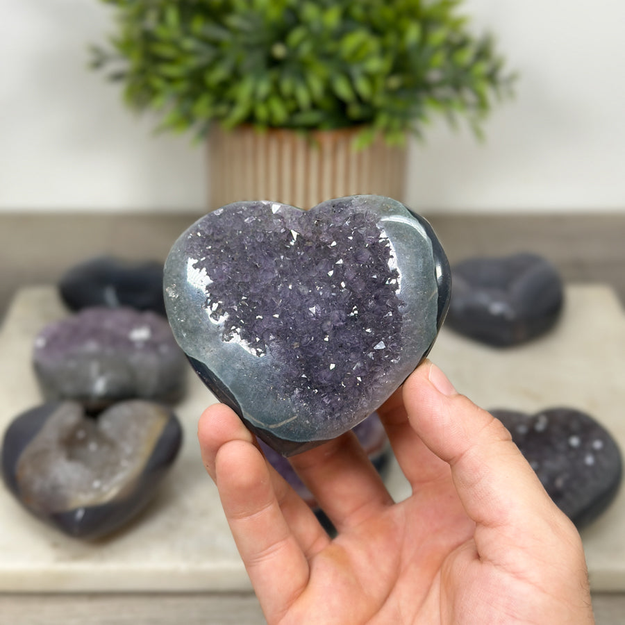 Uruguayan Amethyst Geode With Large Crystals & Black Hematite – Deep Purple Premium Display Piece for Elegant Home Decor - MWS2524