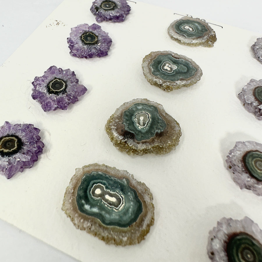 Wholesale Amethyst, Green Jasper & Quartz Stalactite Slices for Jewelry Making - Bulk Flat Set - STS0001