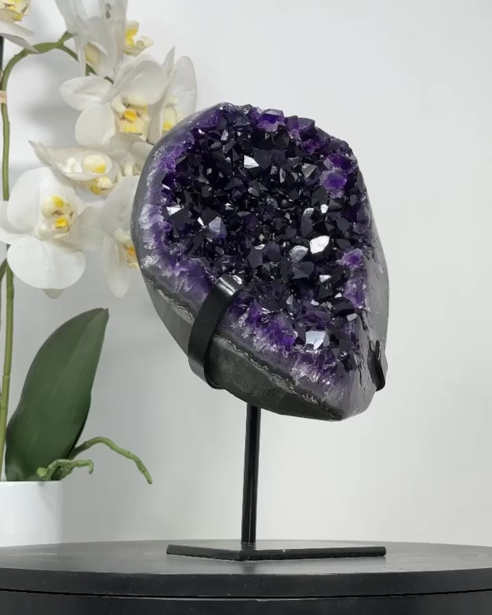 Elevate the ambiance of your home or office with the captivating beauty of our Quartz Specimens. Nestled elegantly on a modern metal display, this stunning piece blends natural elegance with contemporary style, making it a perfect addition to any decor.