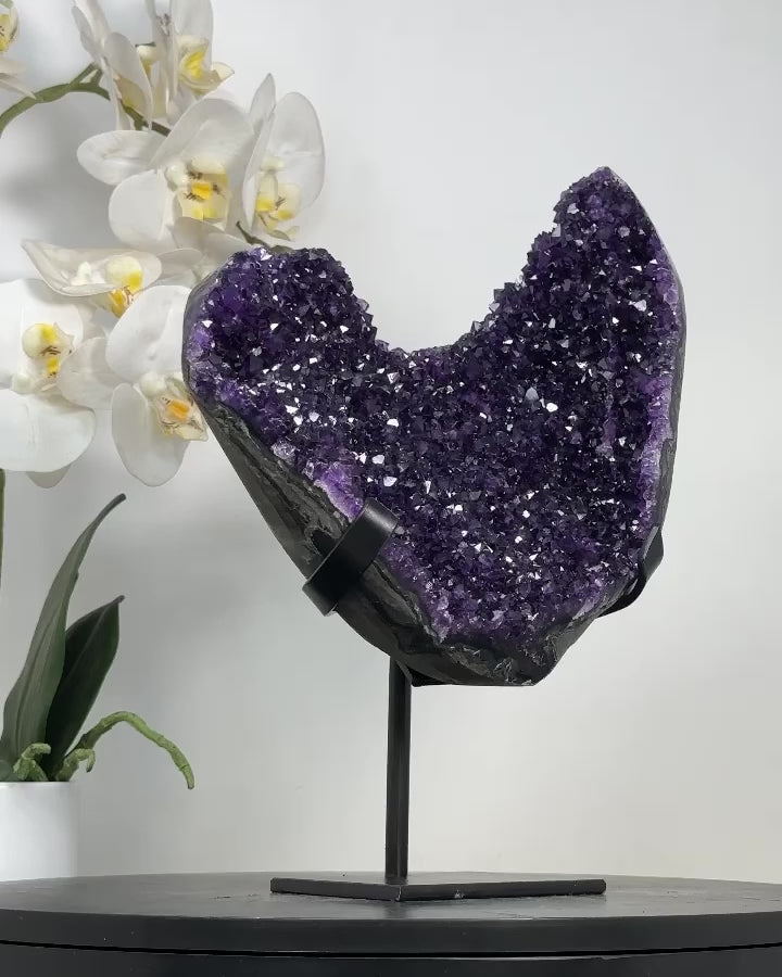 Elevate the ambiance of your home or office with the captivating beauty of our Quartz Specimens. Nestled elegantly on a modern metal display, this stunning piece blends natural elegance with contemporary style, making it a perfect addition to any decor.