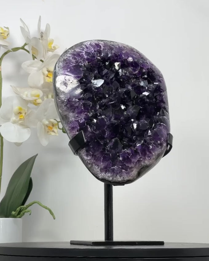 Elevate the ambiance of your home or office with the captivating beauty of our Quartz Specimens. Nestled elegantly on a modern metal display, this stunning piece blends natural elegance with contemporary style, making it a perfect addition to any decor.
