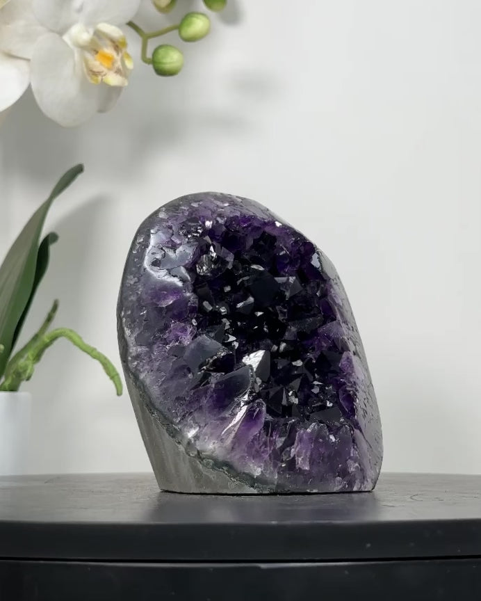 Handcrafted from premium quality Uruguayan Amethyst, these geodes are not only stunning pieces of home decor, but also natural sources of positive energy.