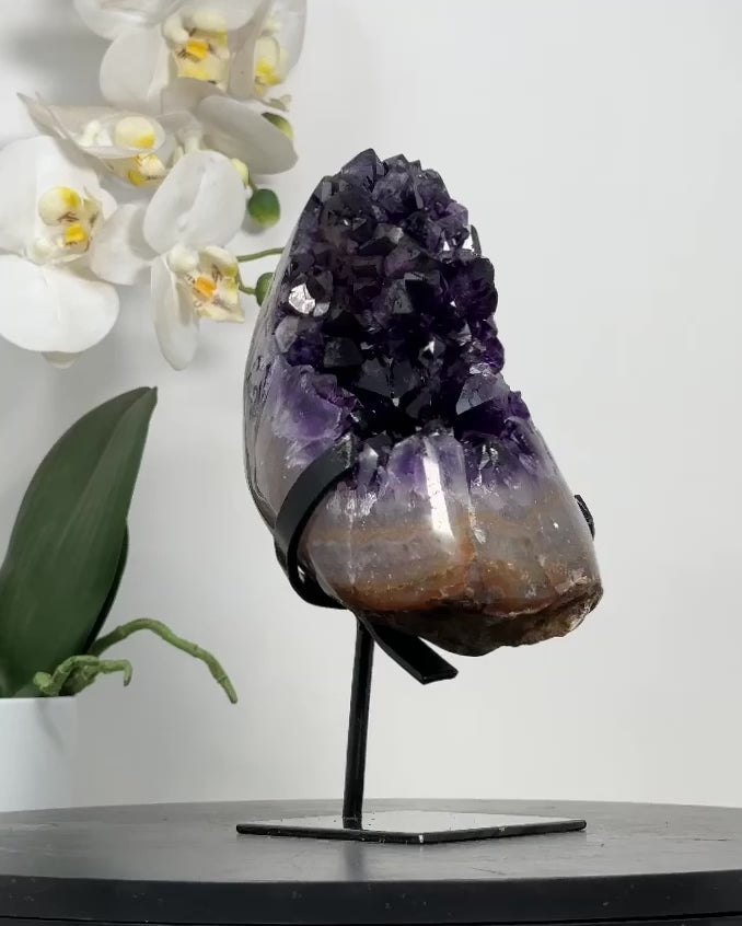 Elevate the ambiance of your home or office with the captivating beauty of our Quartz Specimens. Nestled elegantly on a modern metal display, this stunning piece blends natural elegance with contemporary style, making it a perfect addition to any decor.
