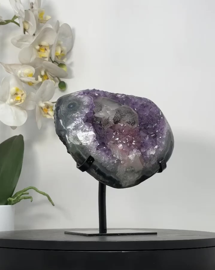 Amethyst is admired not only for its stunning appearance but also for its calming presence. Many believe it promotes relaxation, clarity of mind, and a peaceful atmosphere — making it a meaningful addition to meditation spaces, living rooms, offices, or reception areas. Whether displayed as a decorative statement or enjoyed for its symbolic qualities, this piece brings natural elegance into any space.