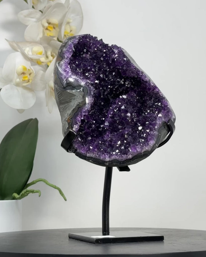 Amethyst Geode with Metallic Stand - Top grade Uruguayan Crystal - MWS2421