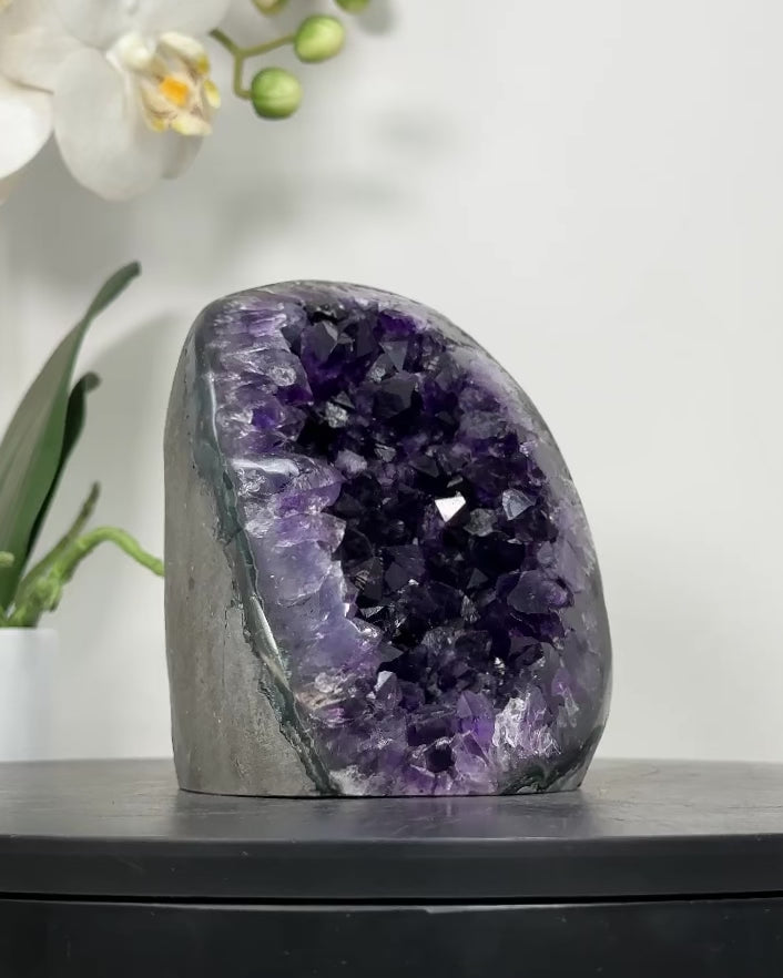Handcrafted from premium quality Uruguayan Amethyst, these geodes are not only stunning pieces of home decor, but also natural sources of positive energy.