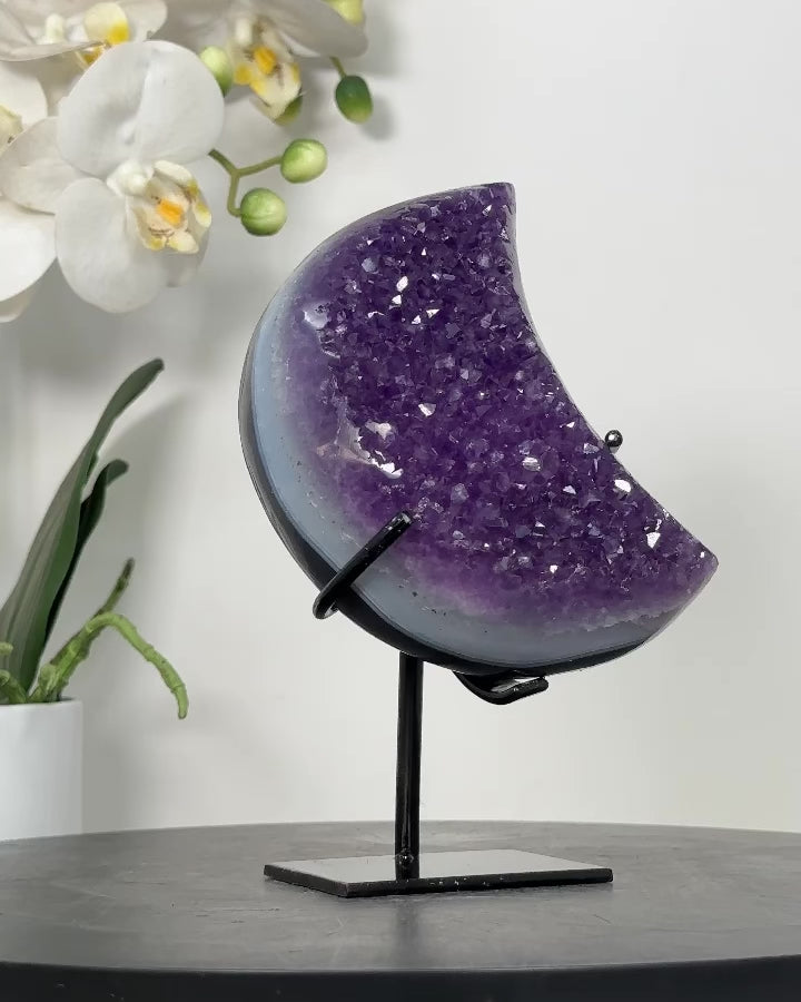 Amethyst Moon Carving on Metal Stand - MWS2574