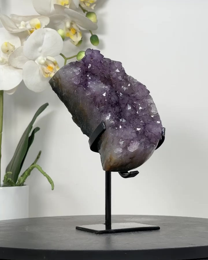 Elevate the ambiance of your home or office with the captivating beauty of our Quartz Specimens. Nestled elegantly on a modern metal display, this stunning piece blends natural elegance with contemporary style, making it a perfect addition to any decor.