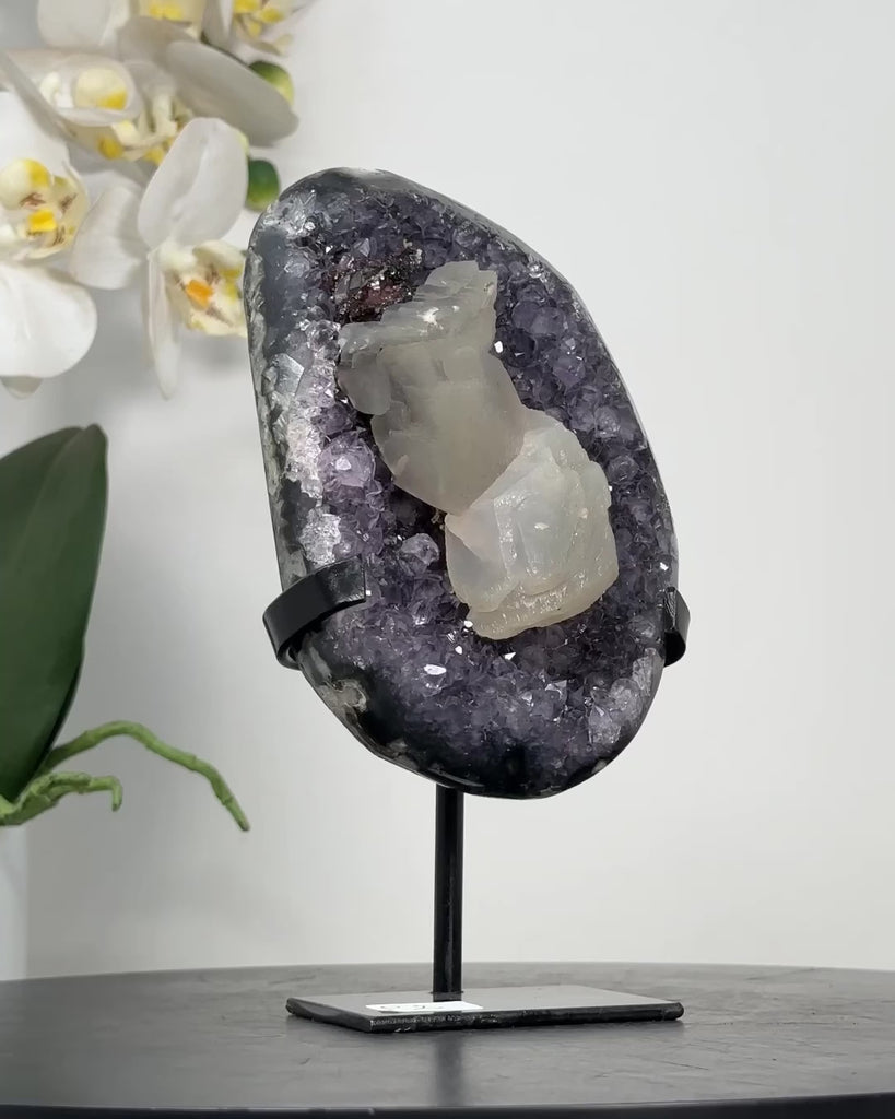 Amethyst with Calcite Inclusion on Metal Stand – Natural Display Piece - MWS2404