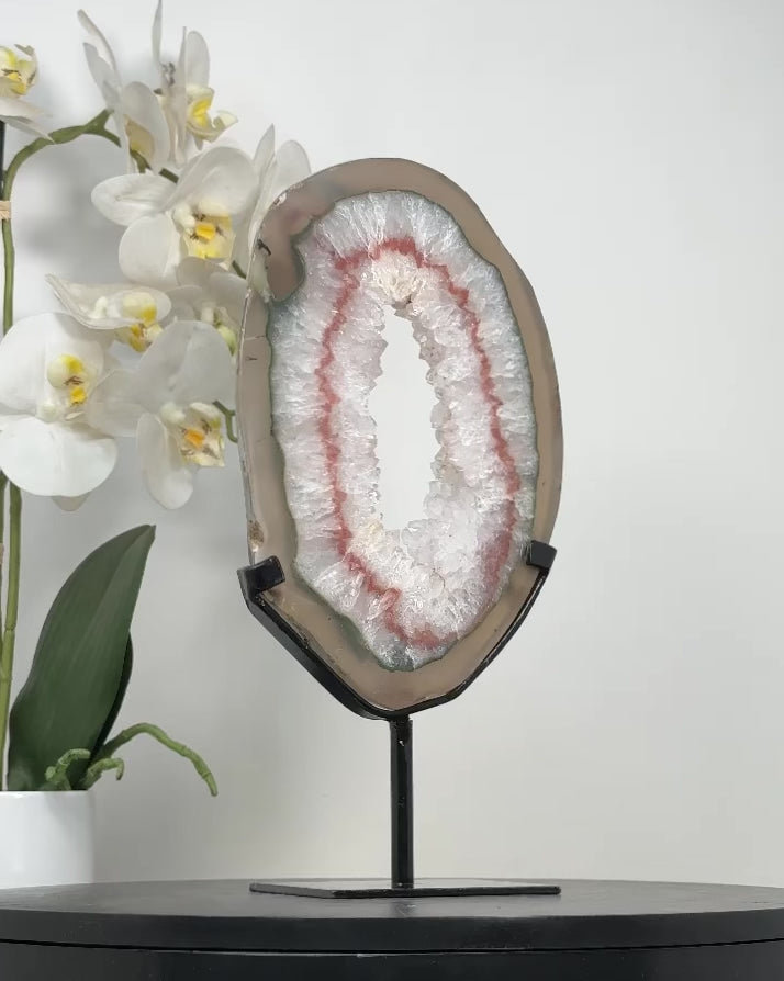 Explore the enchanting world of Uruguay's finest minerals with our unique collection of hand-polished specimens. Each piece is meticulously crafted and accompanied by a custom-made metal stand, enhancing its natural beauty and elegance.