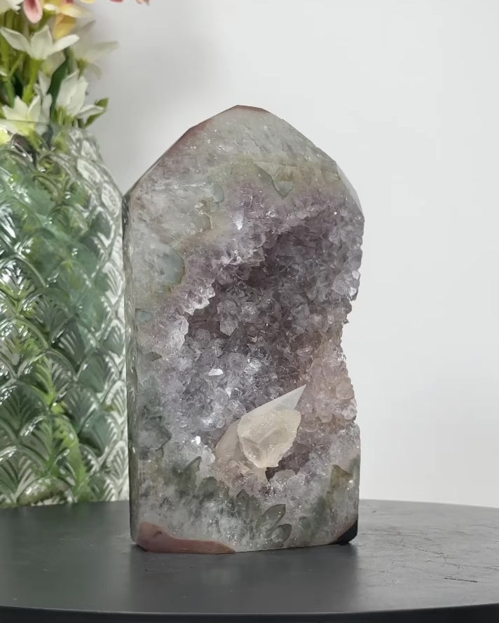 Beautiful Amethyst Tower with Calcite Specimen - STP0140