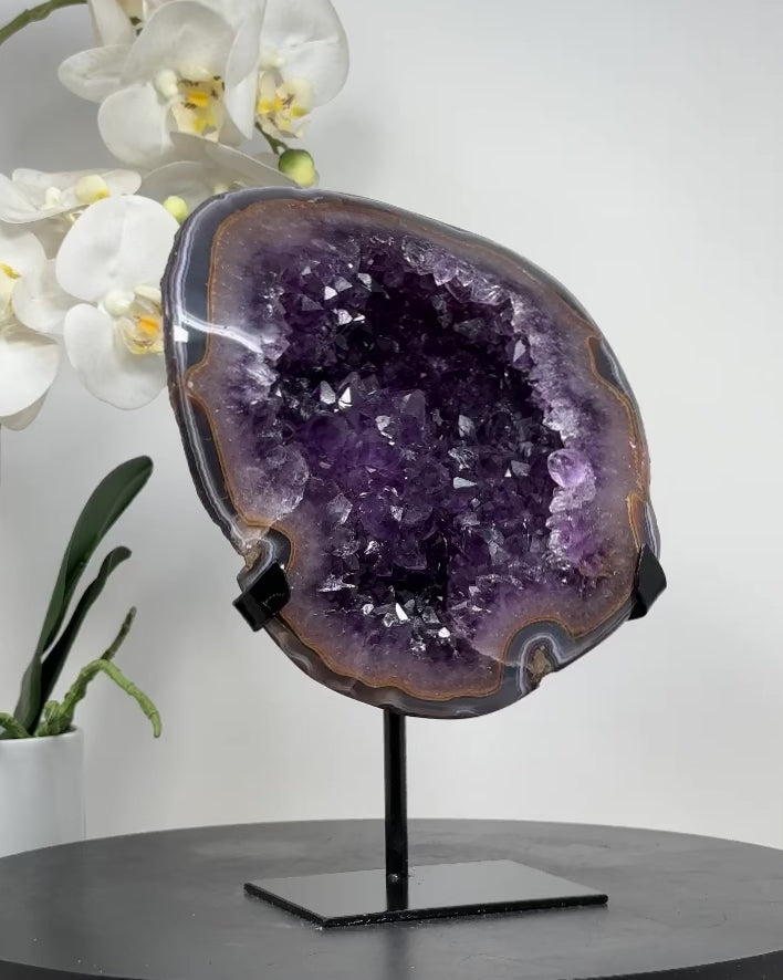 Beautiful Uruguayan Amethyst Geode with Blue Banded Agate Shell - MWS1662