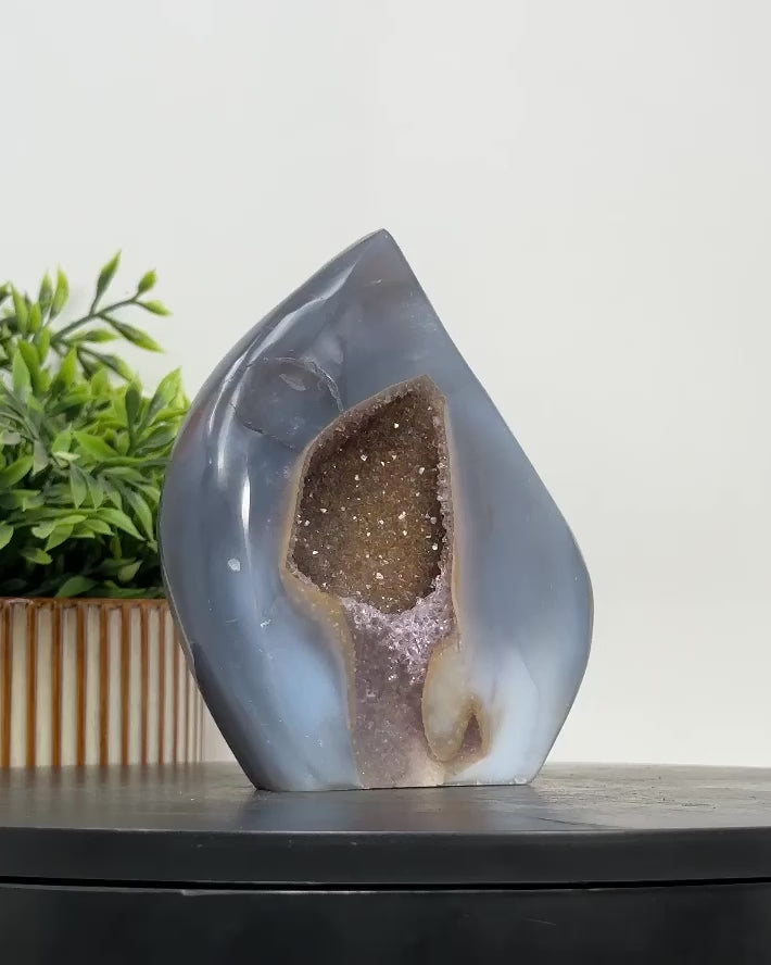 Blue Agate & Quartz Druzy Stone Flame Carving - FST0161