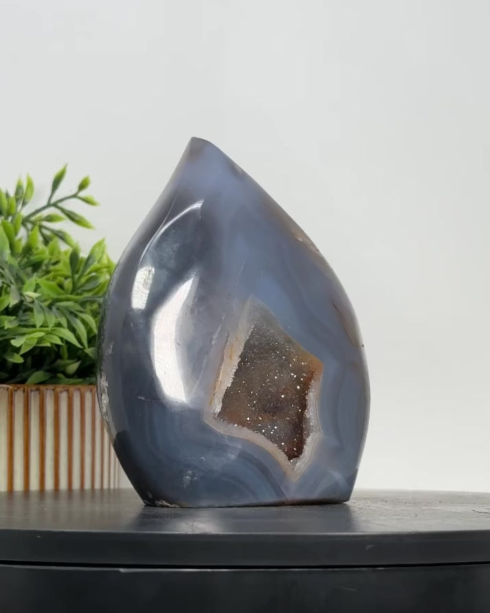 Blue Agate & Rainbow Quartz Druzy Stone Flame - FST0162