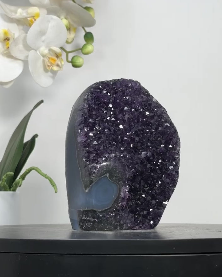 ✧ Our beauties were extracted from the prestigious Don Camilo mine located in Artigas, Uruguay, this unique crystal piece boasts a natural elegance. Its edges have been delicately polished to accentuate the crystals' unique and vibrant colors.