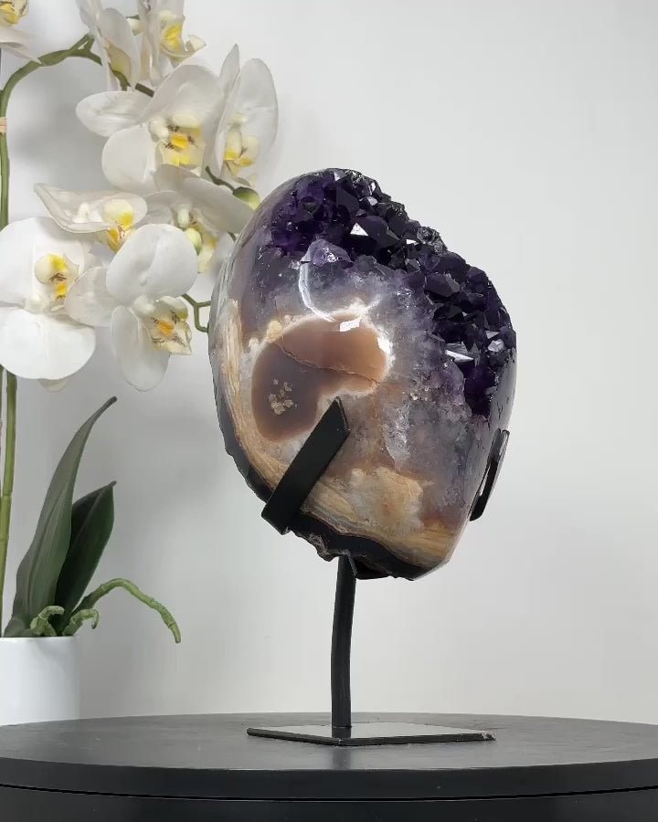 Elevate the ambiance of your home or office with the captivating beauty of our Quartz Specimens. Nestled elegantly on a modern metal display, this stunning piece blends natural elegance with contemporary style, making it a perfect addition to any decor.