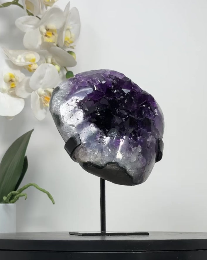 Deep Purple Amethyst Geode with Large & Shinny Crystals - MWS2083