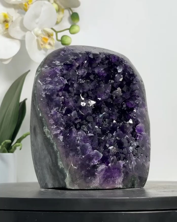 Handcrafted from premium quality Uruguayan Amethyst, these geodes are not only stunning pieces of home decor, but also natural sources of positive energy.
