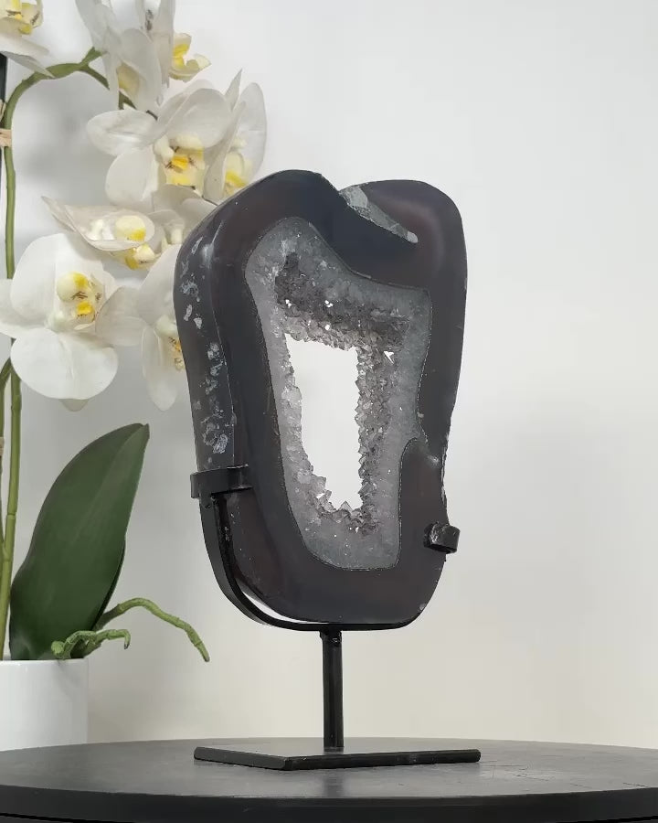 Explore the enchanting world of Uruguay's finest minerals with our unique collection of hand-polished specimens. Each piece is meticulously crafted and accompanied by a custom-made metal stand, enhancing its natural beauty and elegance.