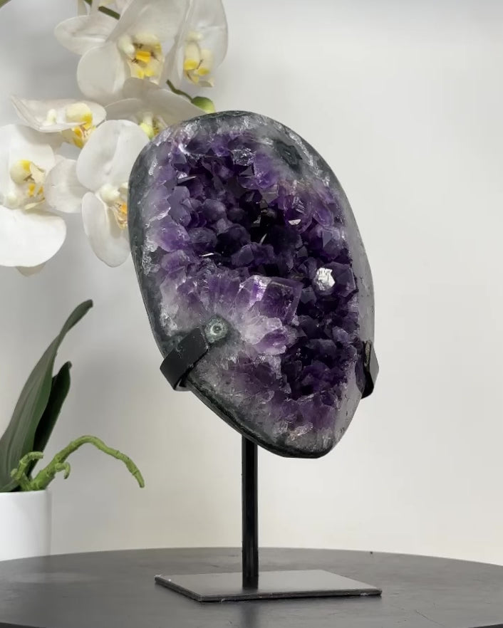Elevate the ambiance of your home or office with the captivating beauty of our Quartz Specimens. Nestled elegantly on a modern metal display, this stunning piece blends natural elegance with contemporary style, making it a perfect addition to any decor.