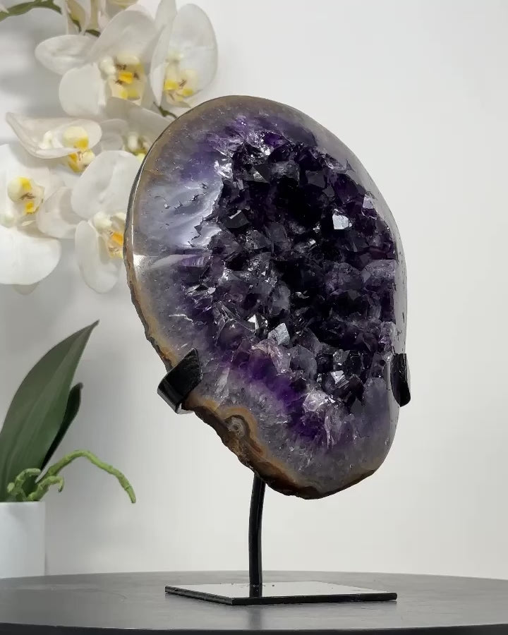 Elevate the ambiance of your home or office with the captivating beauty of our Quartz Specimens. Nestled elegantly on a modern metal display, this stunning piece blends natural elegance with contemporary style, making it a perfect addition to any decor.